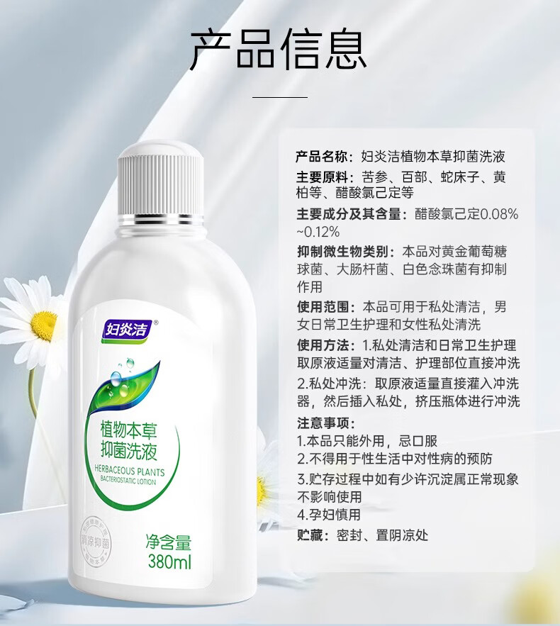 妇炎洁私处洗液女性私密处清洗液植物本草苦参抑菌清洁外阴私处护理洗液 冲洗器*1支