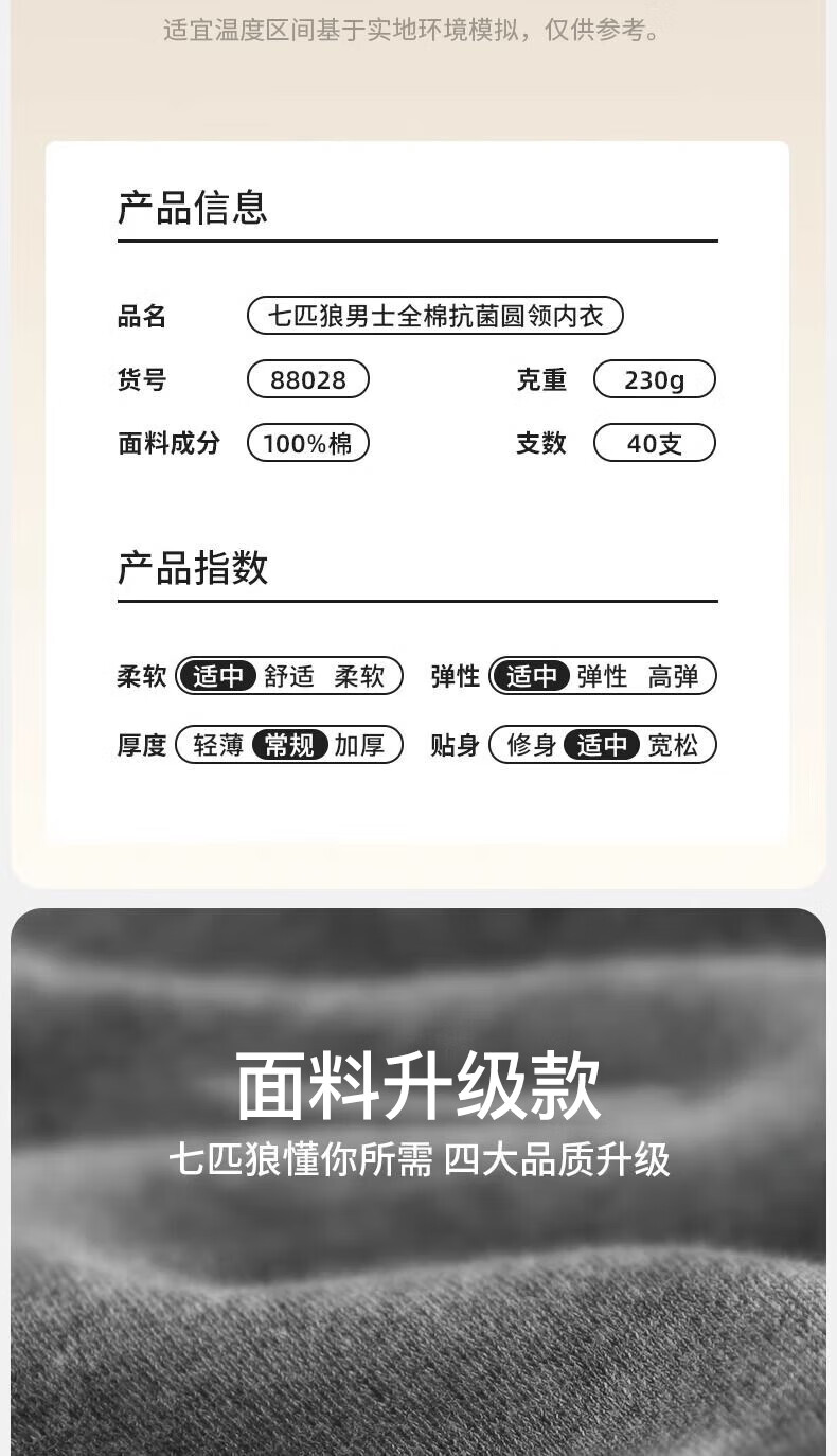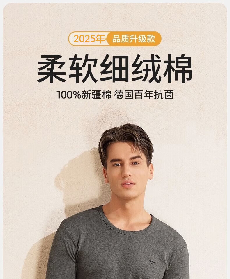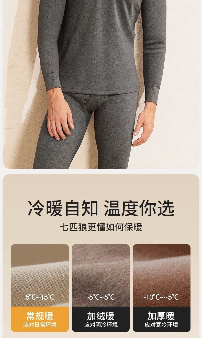 七匹狼(SEPTWOLVES)保暖内衣男纯棉抑菌秋衣秋裤男圆领套装秋冬内衣