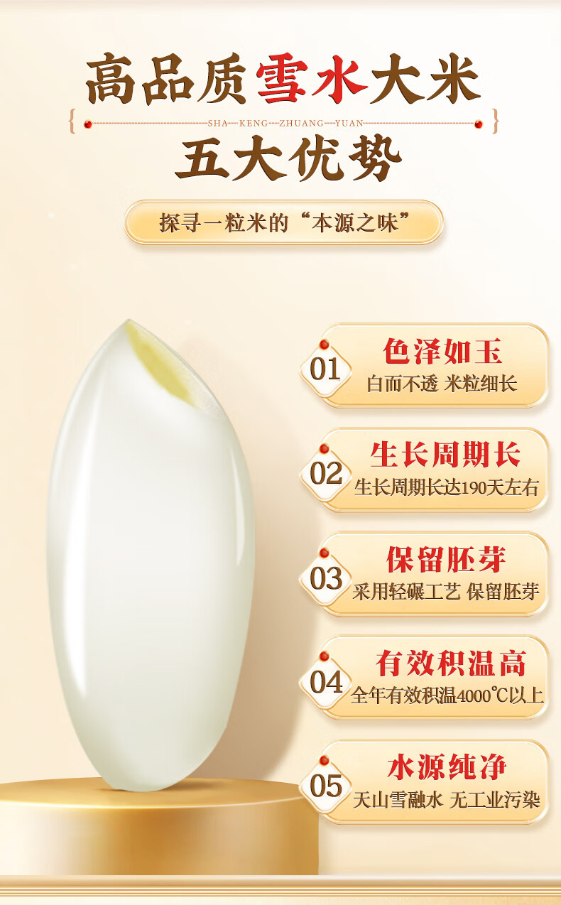 羊脂籽米沙垦庄园沙漠玉珠香米 新疆大米粳米寿司米胚芽米5斤 25年新米