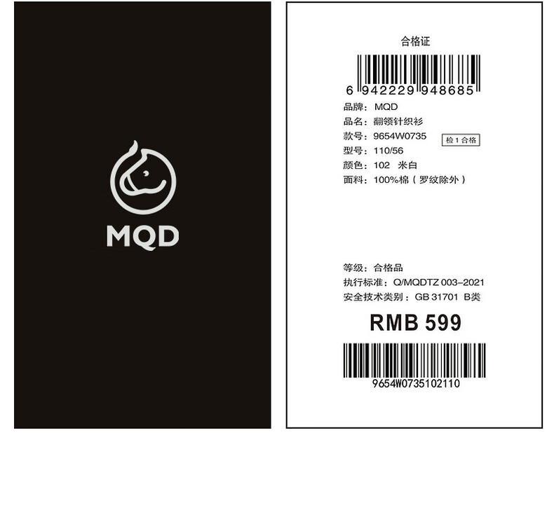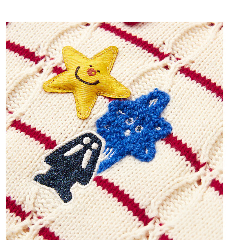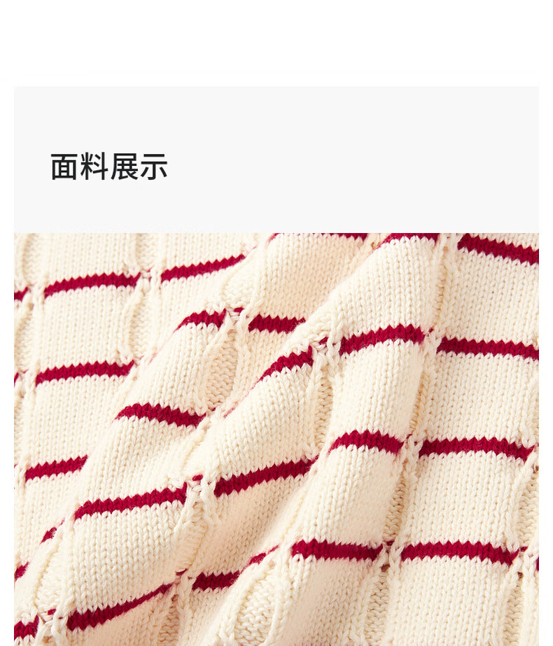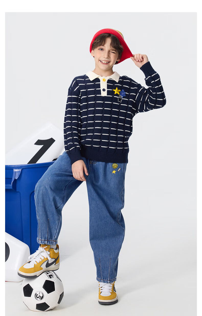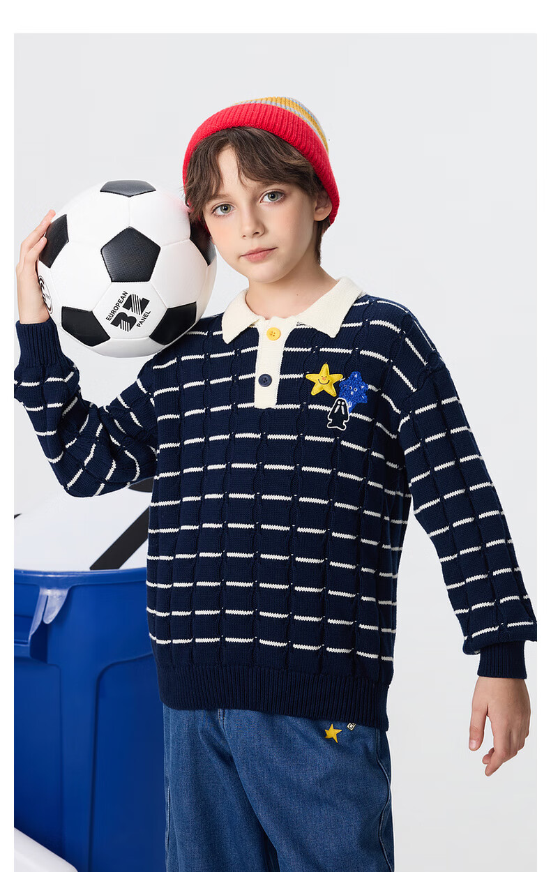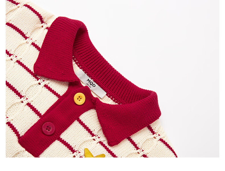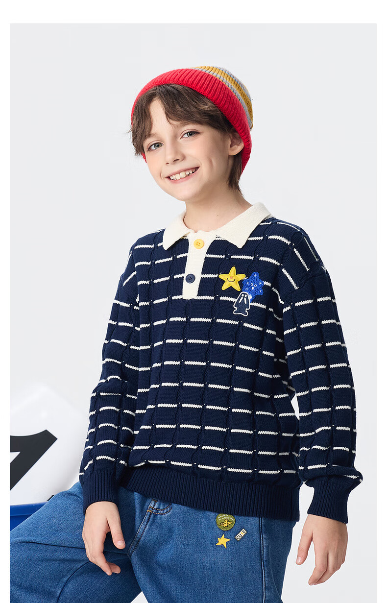 马骑顿【艺术系列】MQD男童25冬新款学院风老钱风条纹翻领毛衣 米白 140