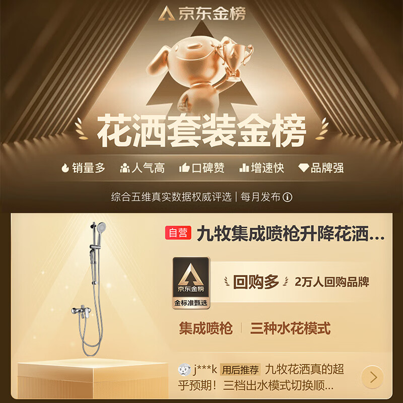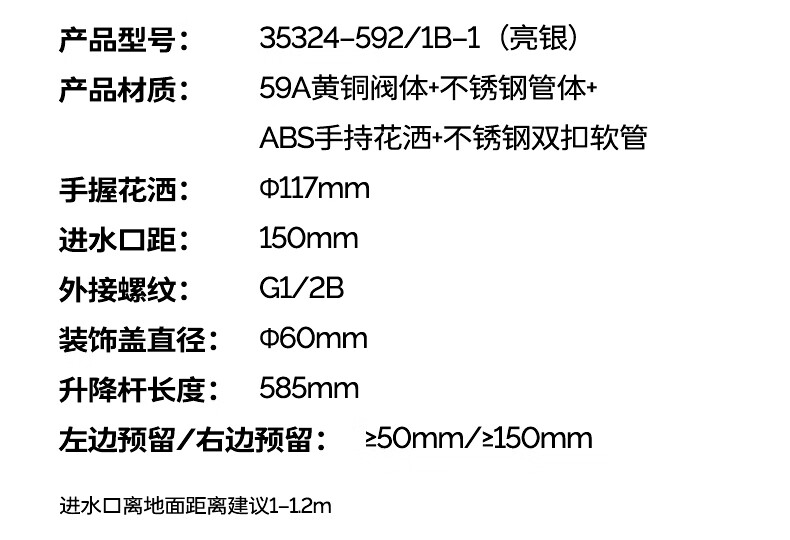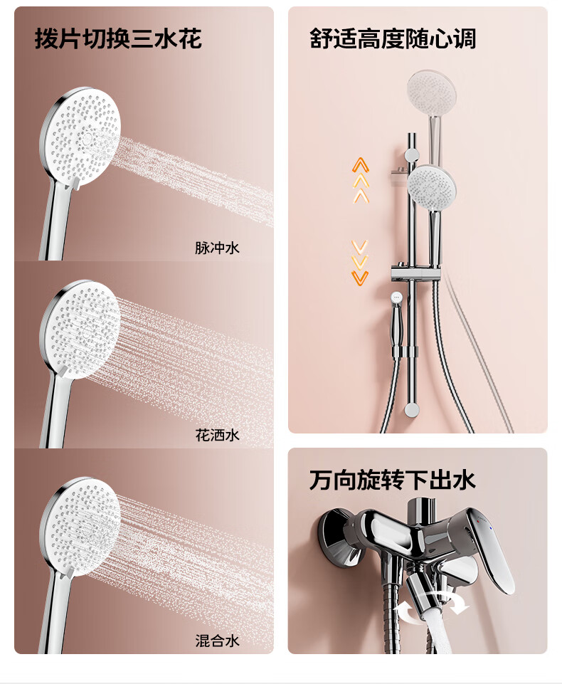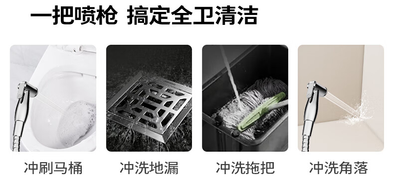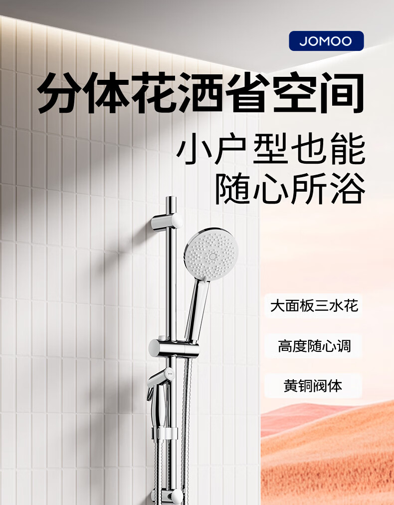 九牧(JOMOO)亮银集成升降硅胶除垢三功能分体淋浴器喷枪款35324-592/1B-1