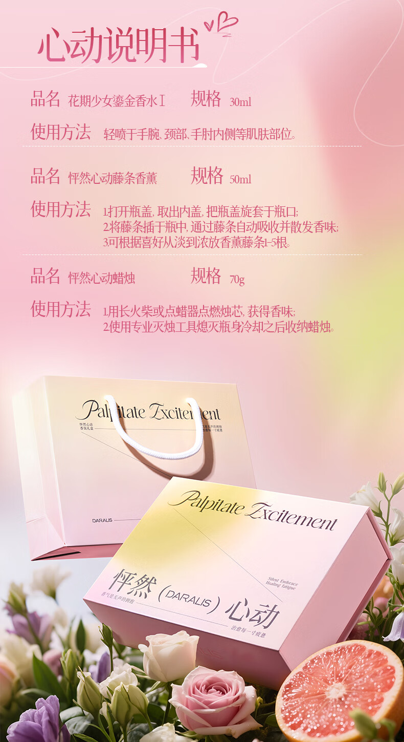 笛爱儿怦然心动香水香薰蜡烛礼盒套装室内摆件生日礼物送女友女生礼物