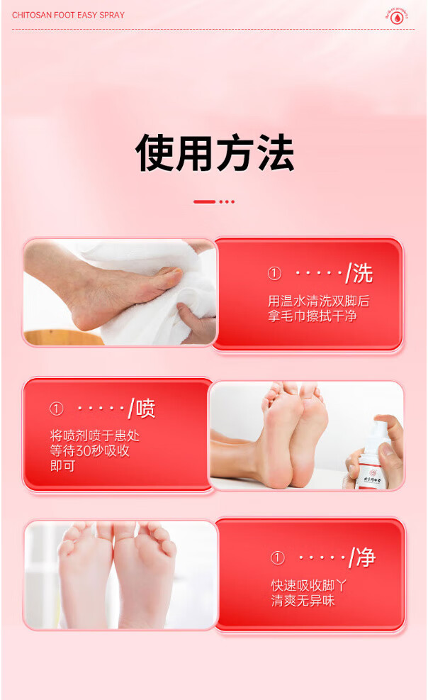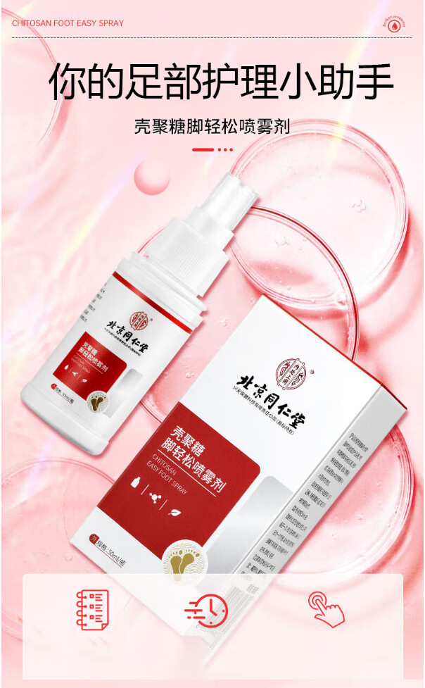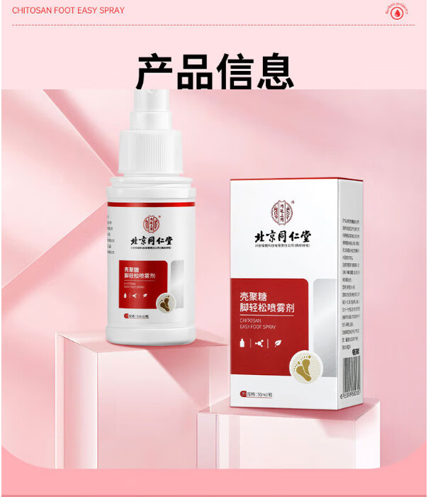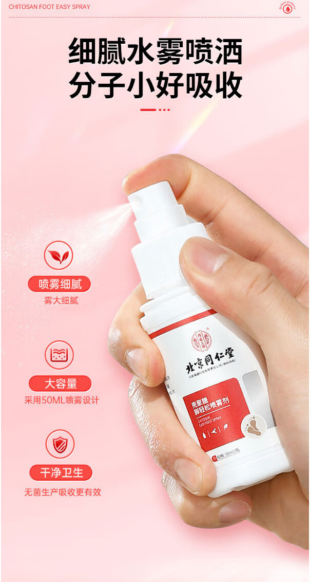 内廷上用北京同仁堂壳聚糖脚轻松喷雾剂足藓手藓真菌感染辅助治疗脚气喷剂 1盒50ml【体验装】