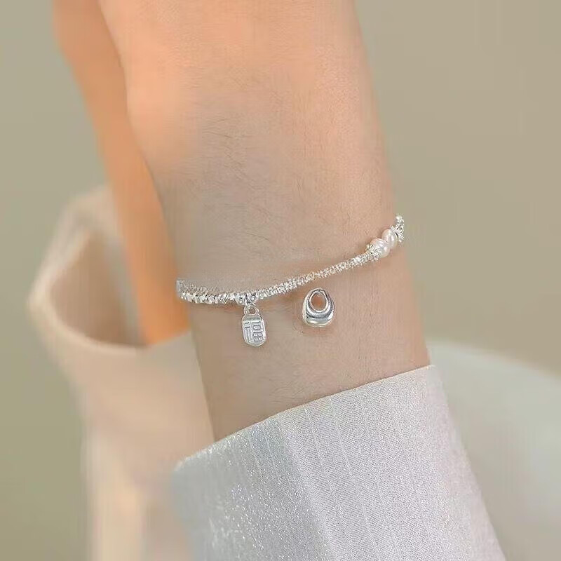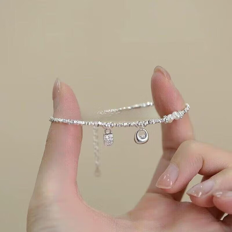 CFKLTD老凤凰999纯银足银碎银子小福袋手链女ins感小众百搭气质精致 碎