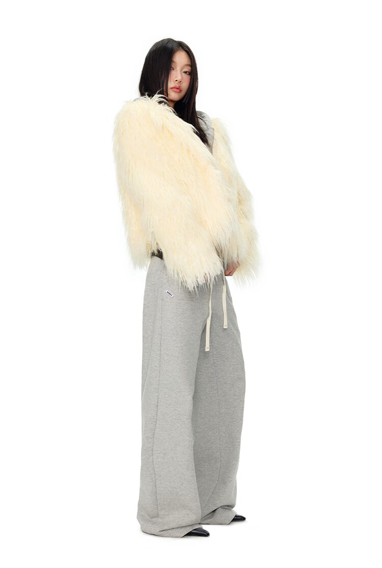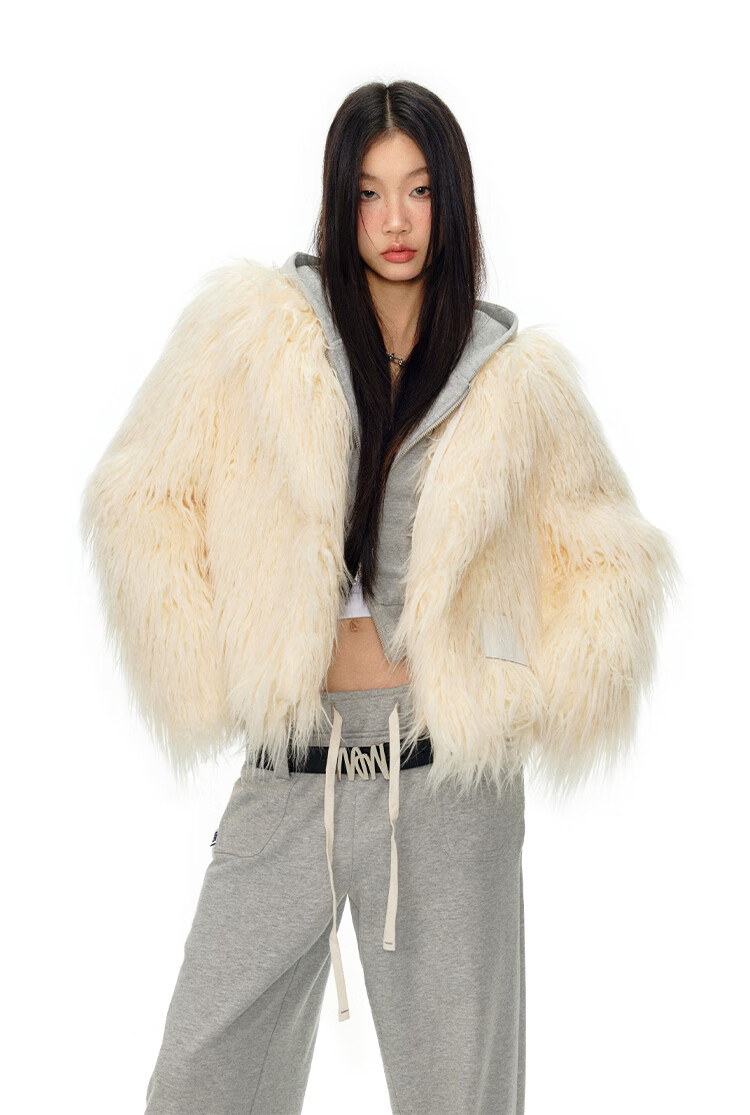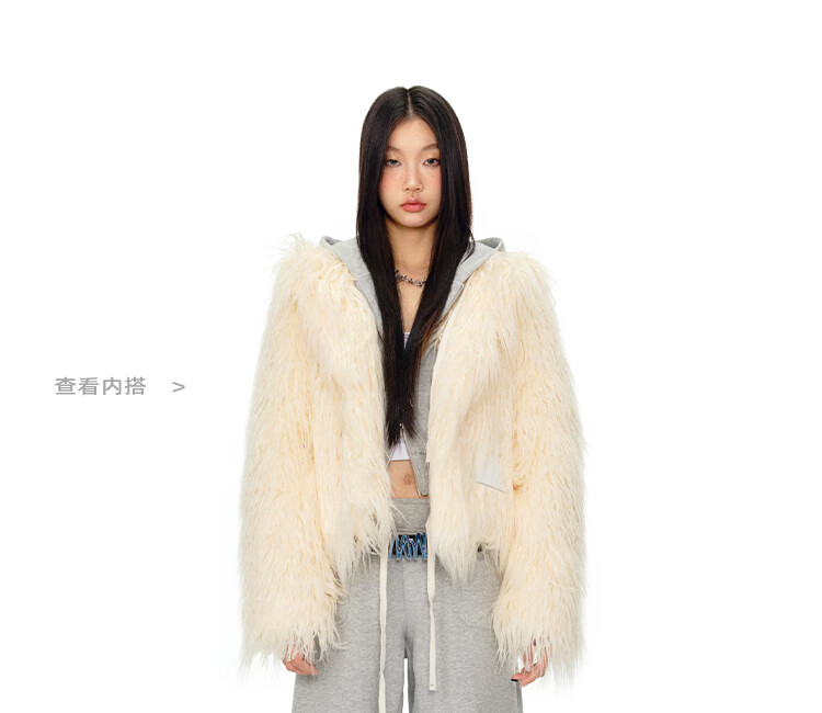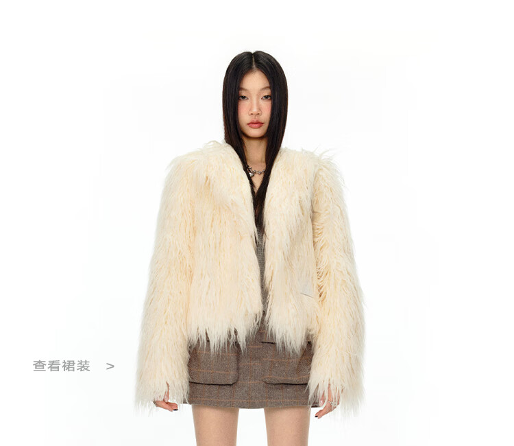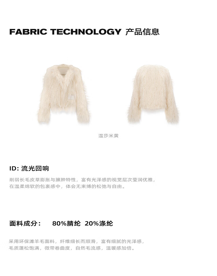 NAWS 流光回响 自带柔光滤镜 翻折领环保滩羊毛皮草外套 温莎米黄(现货) S