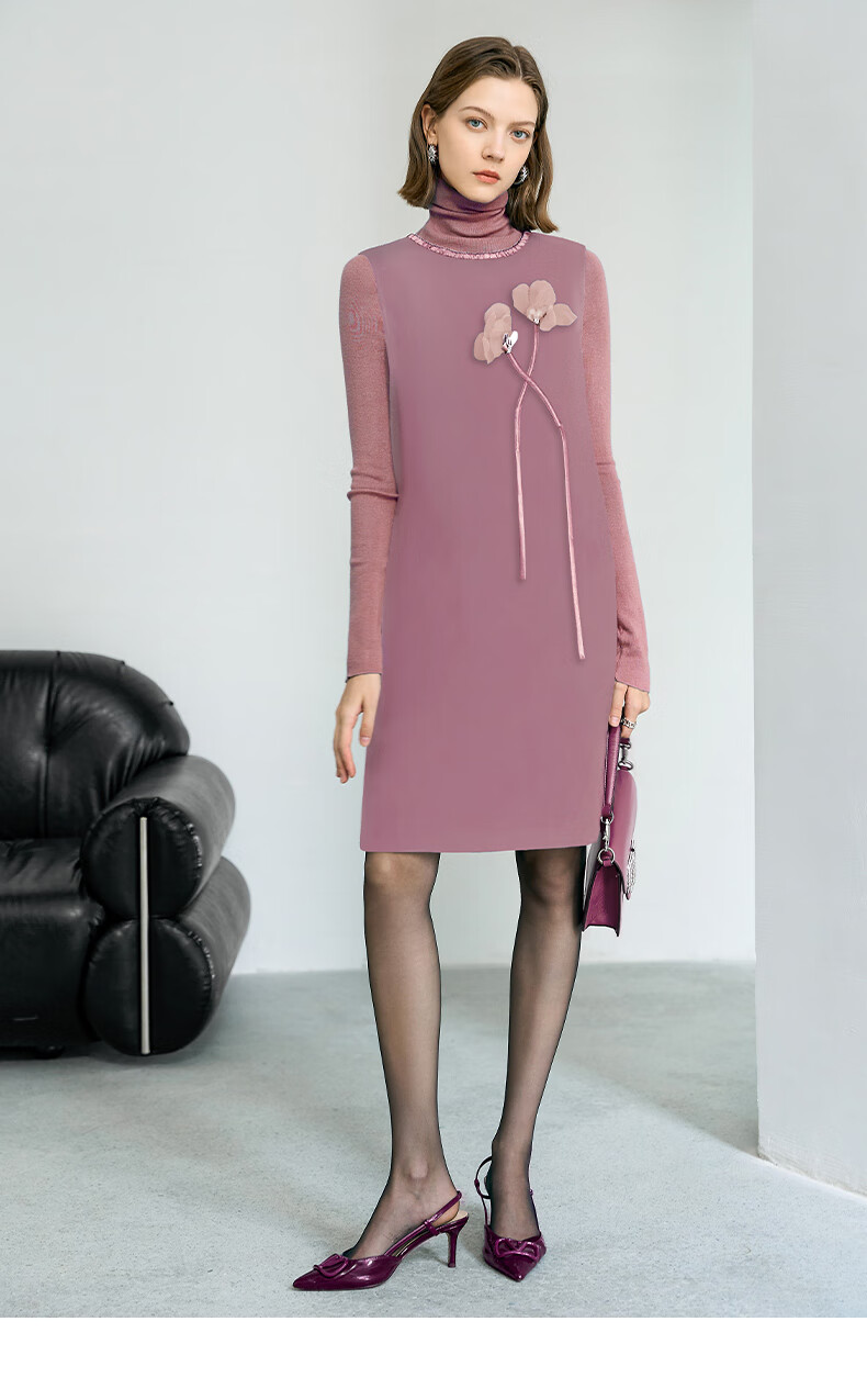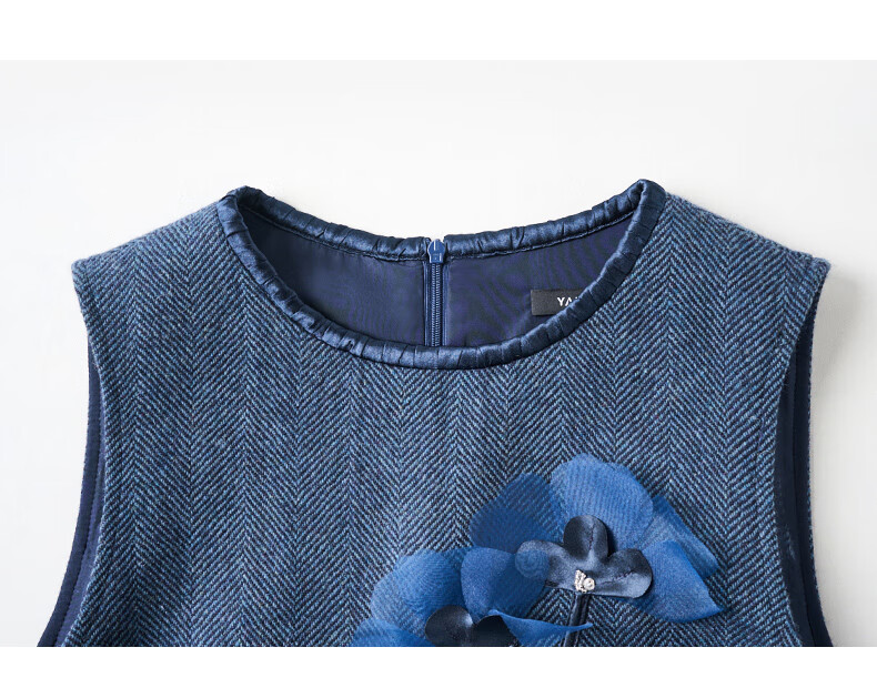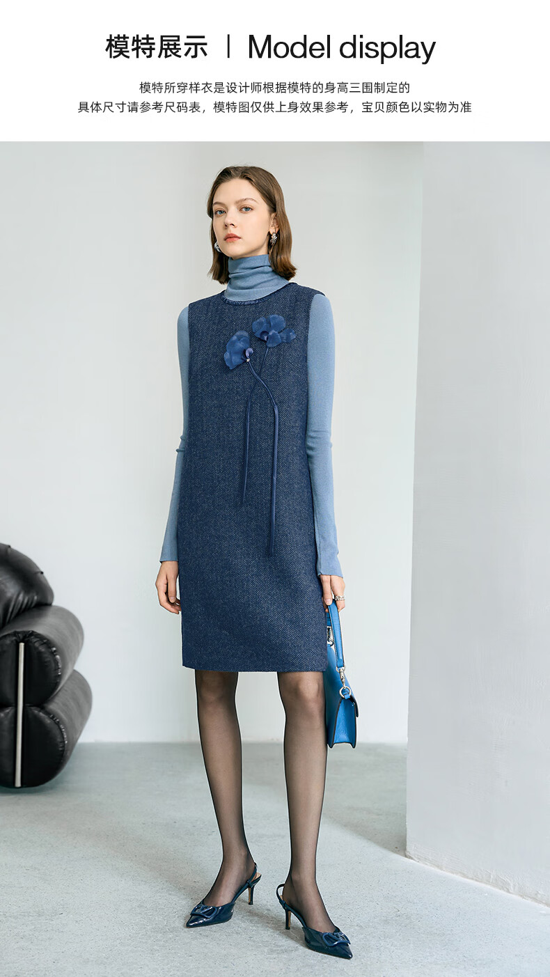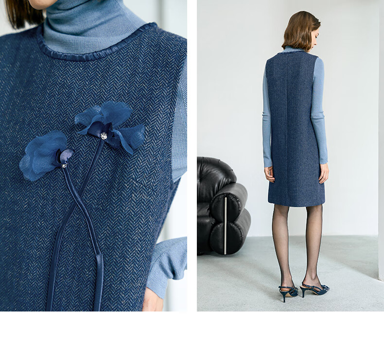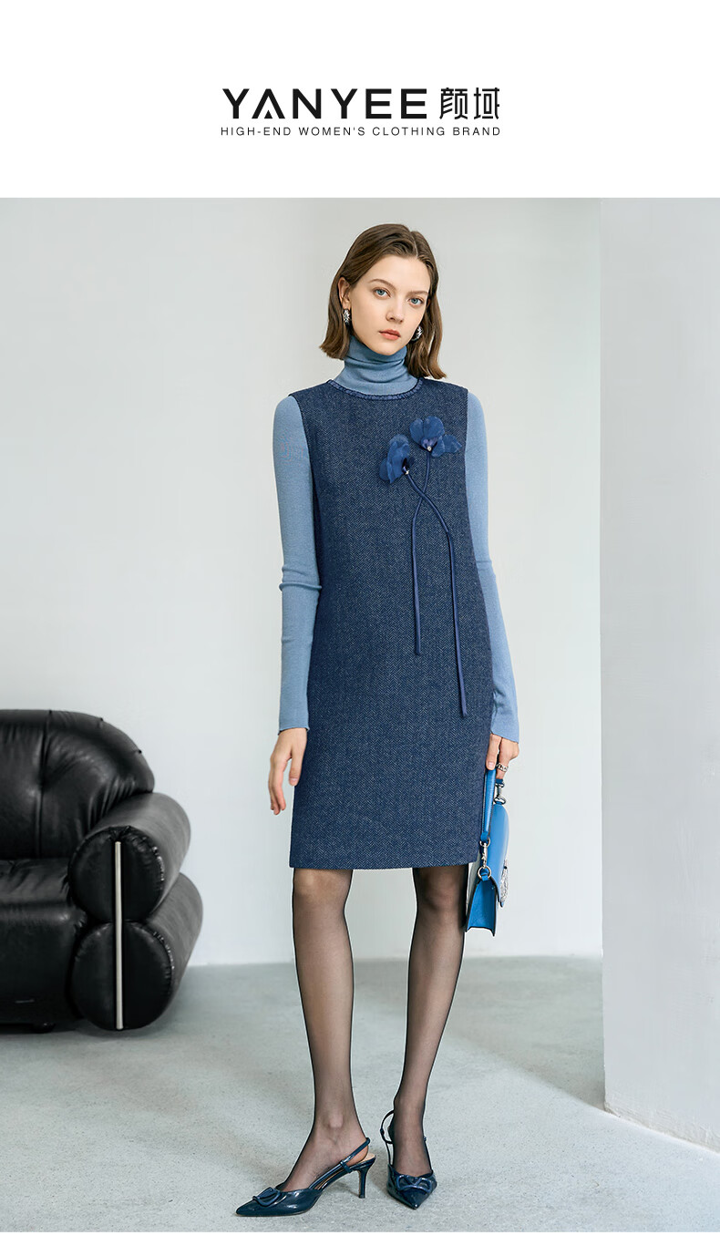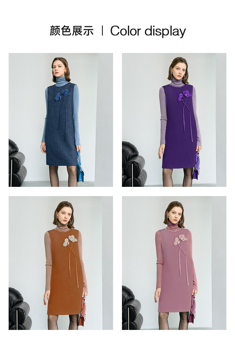 颜域绵羊毛优雅连衣裙女士2025新款冬装中长款圆领裙子毛呢背心裙 粉色 L