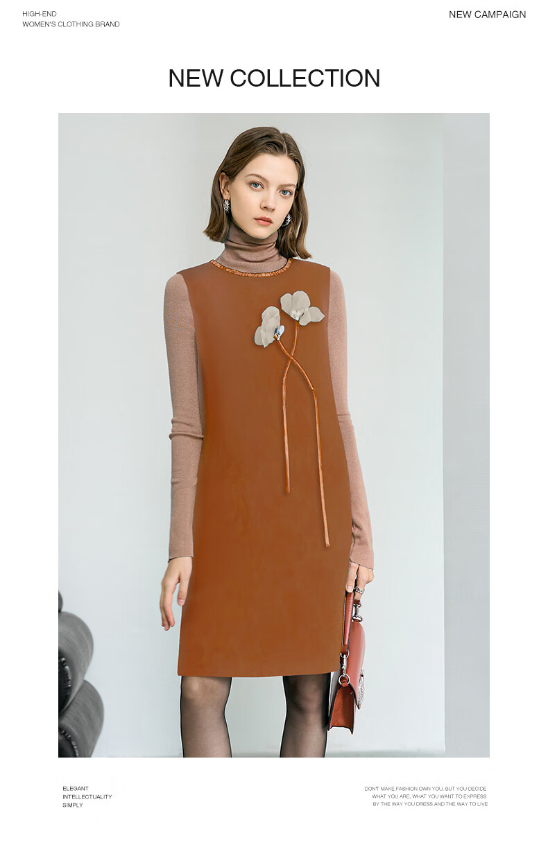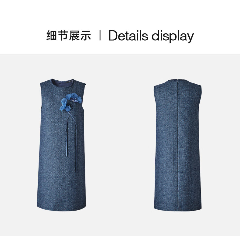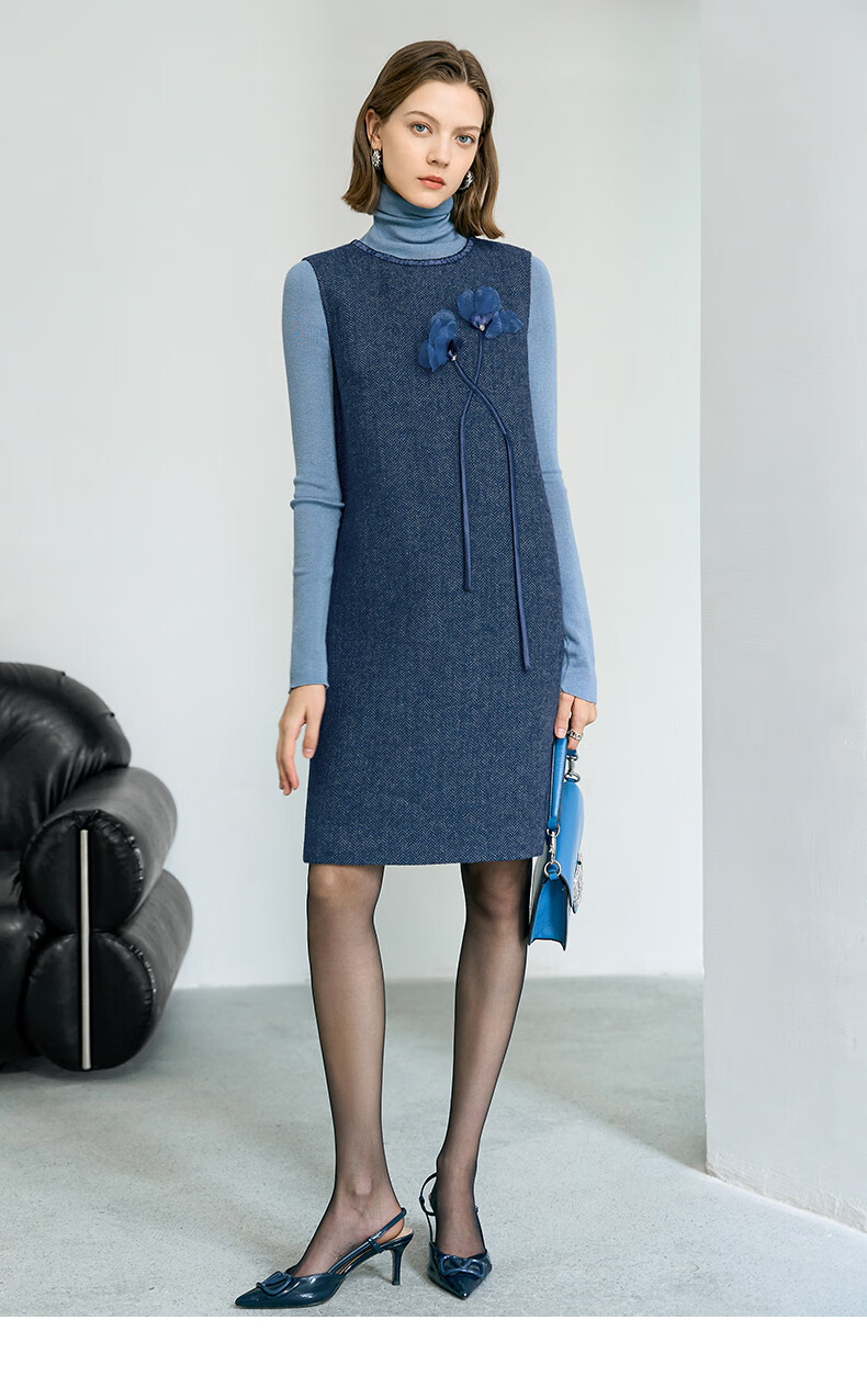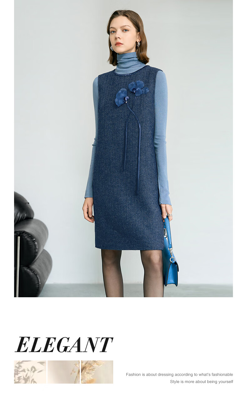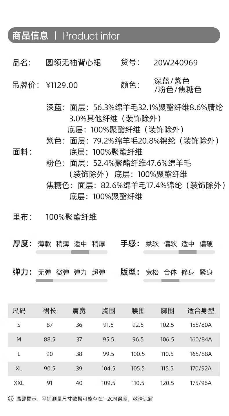 颜域绵羊毛优雅连衣裙女士2025新款冬装中长款圆领裙子毛呢背心裙 粉色 L