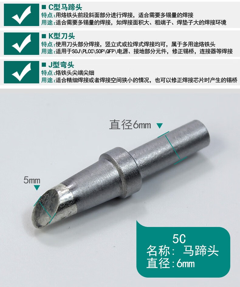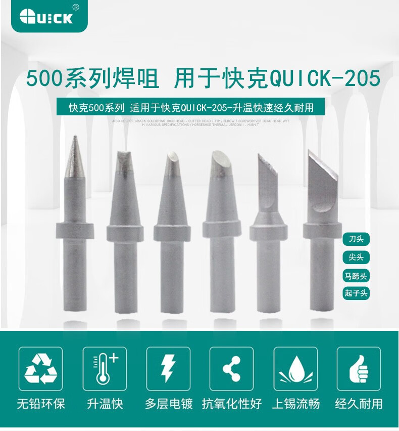 快克(QUICK)205焊台烙铁咀150W大功率快克500-K系列电烙铁头内热式马蹄型刀头 500-SK