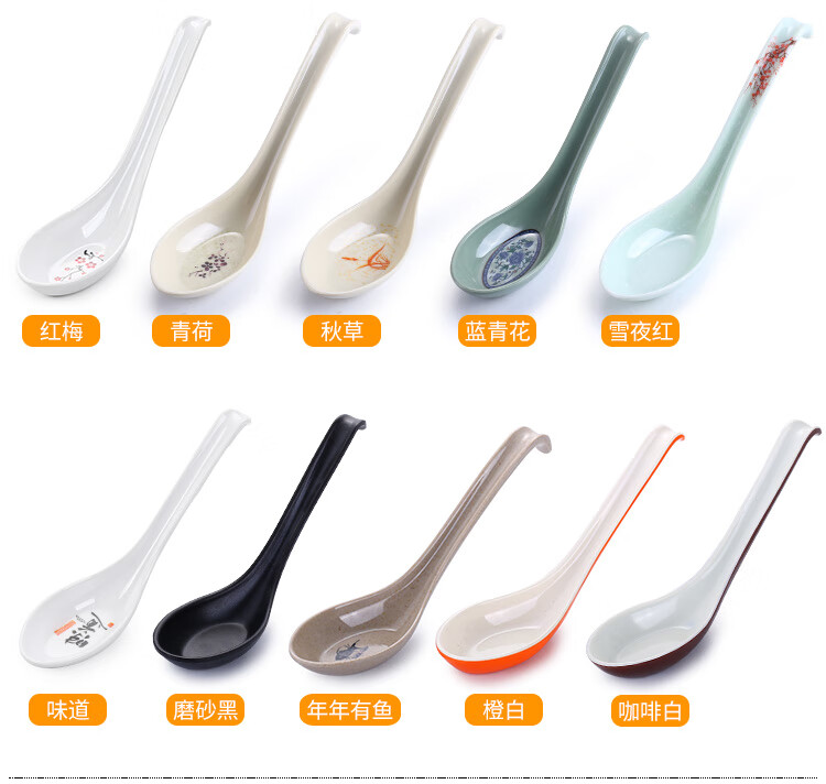 瓶樽天下密胺勺子商用餐饮塑料小汤勺快餐饭店麻辣烫专用仿瓷汤匙长柄调羹 A5白色 【20只装】