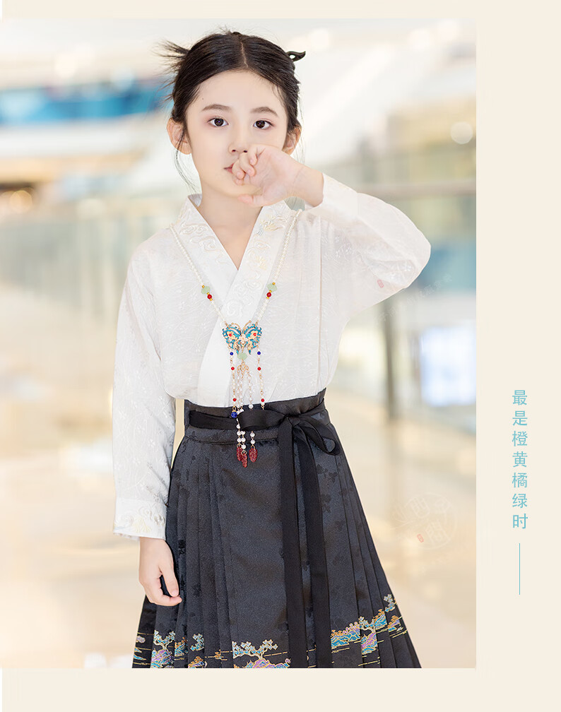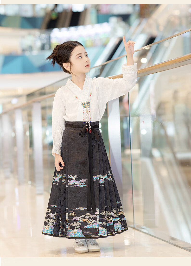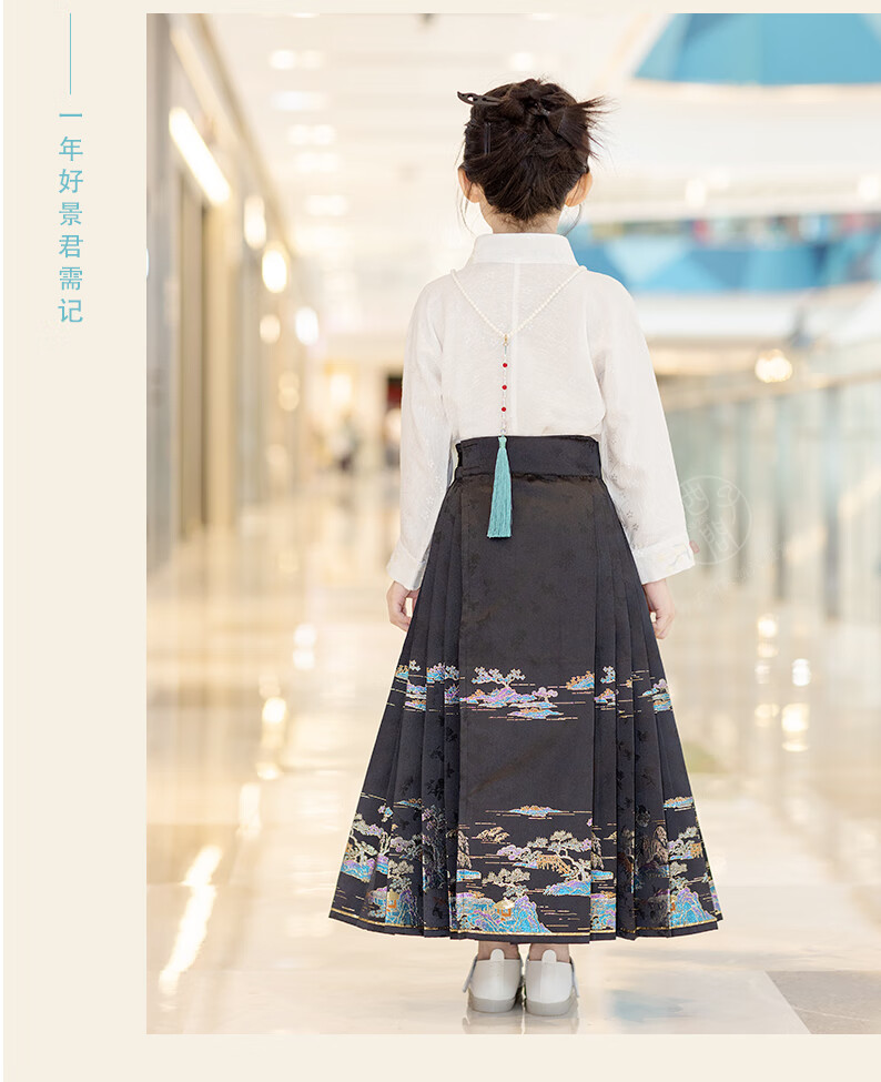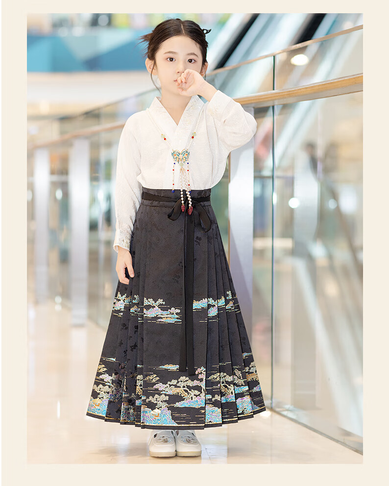 西子问【西子问】汉服女童马面裙2025春秋新款小女孩半身裙日常通勤落萦 落萦黑色马面裙 100
