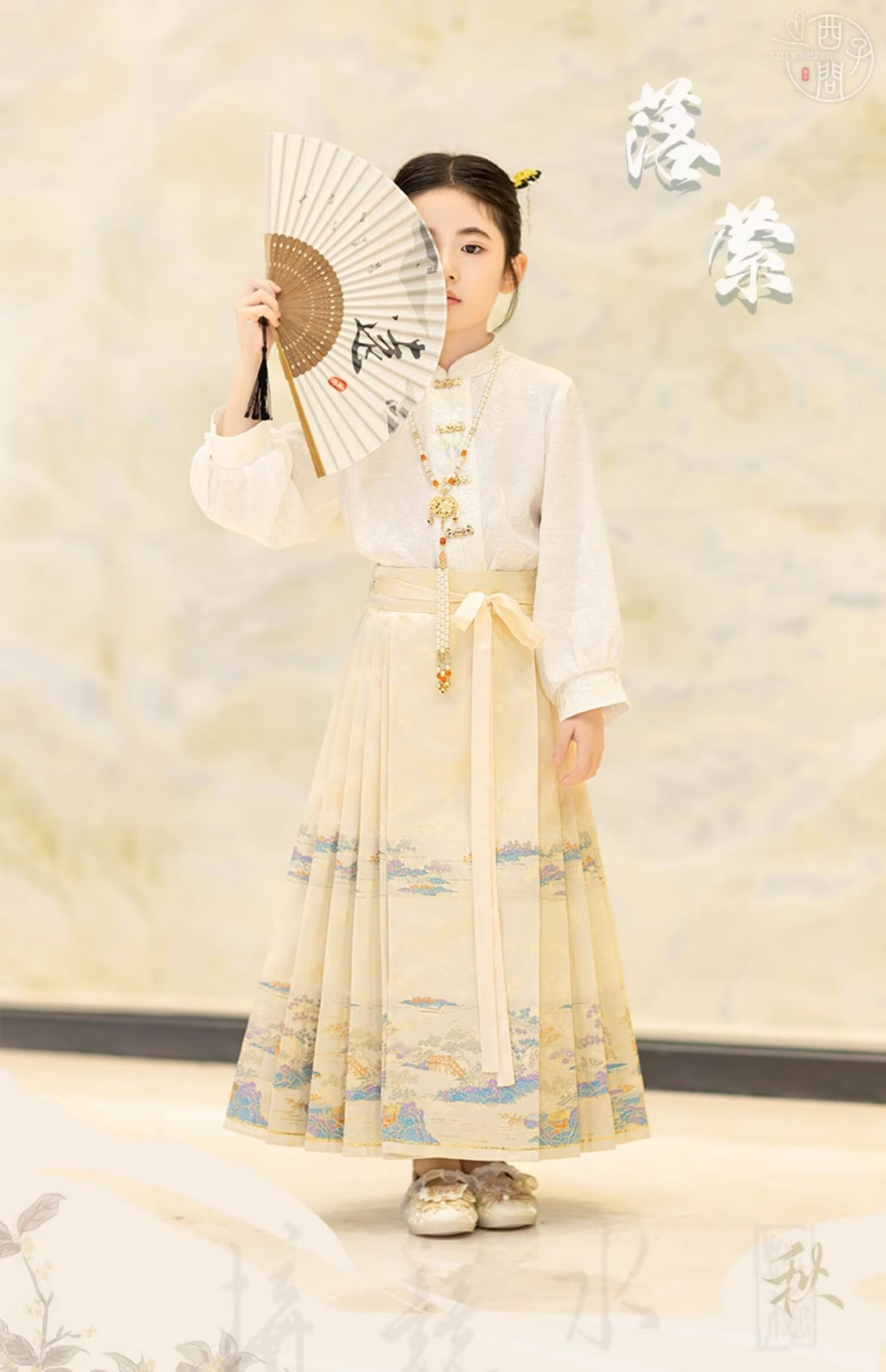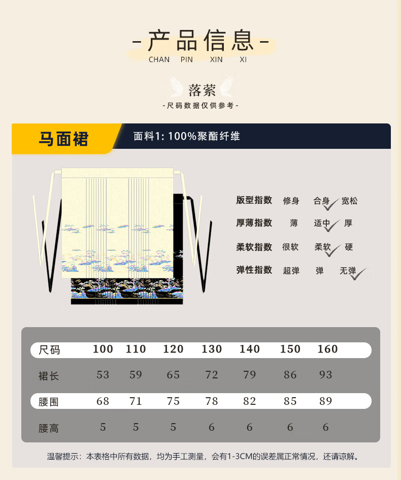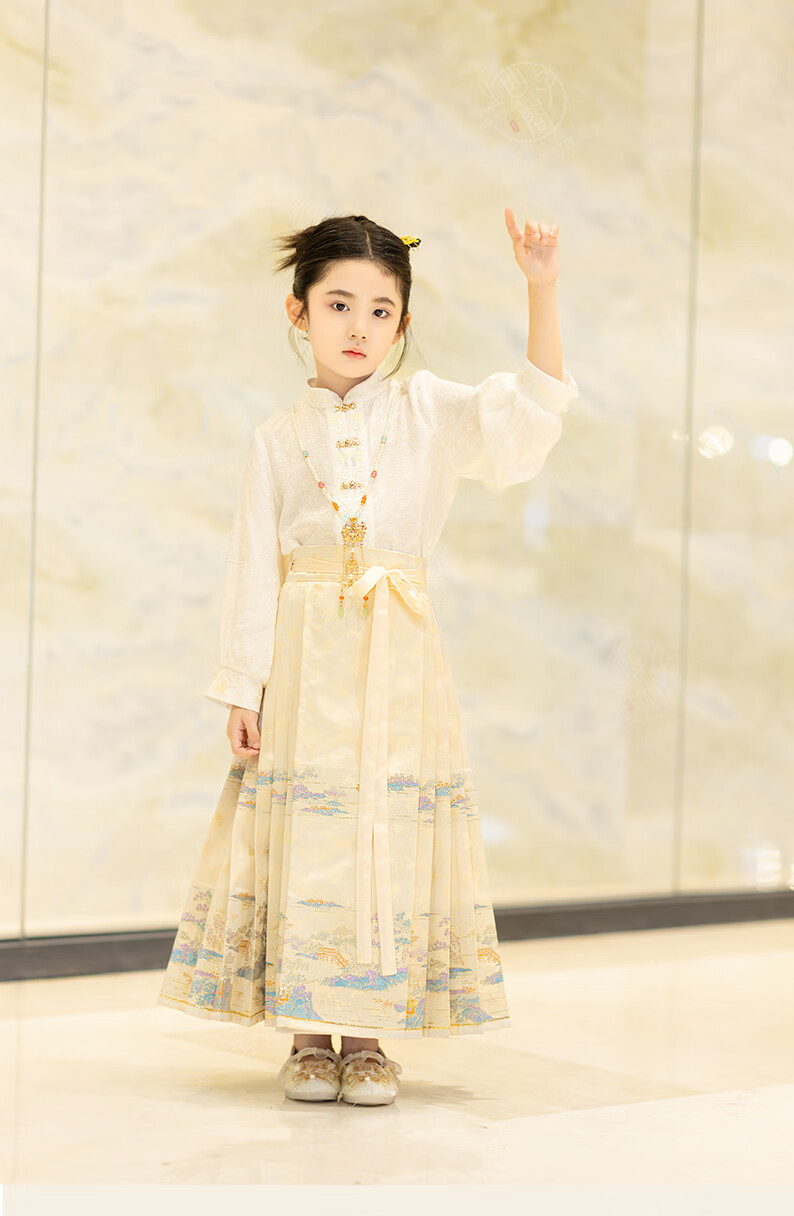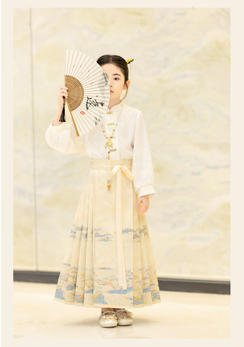 西子问【西子问】汉服女童马面裙2025春秋新款小女孩半身裙日常通勤落萦 落萦黑色马面裙 100