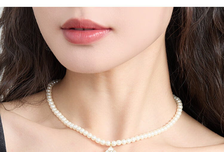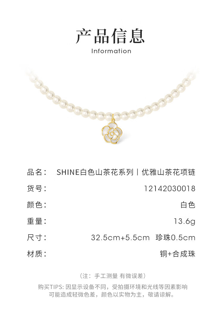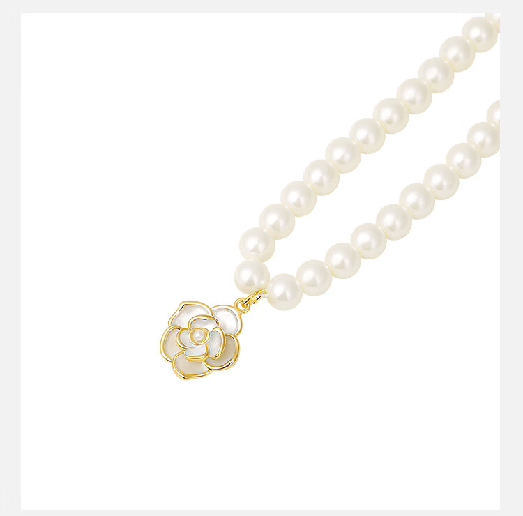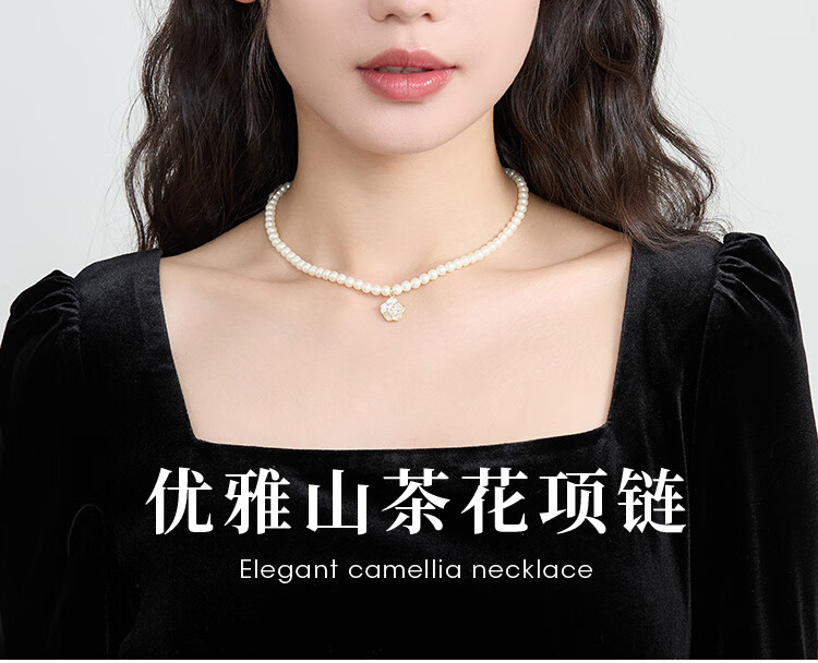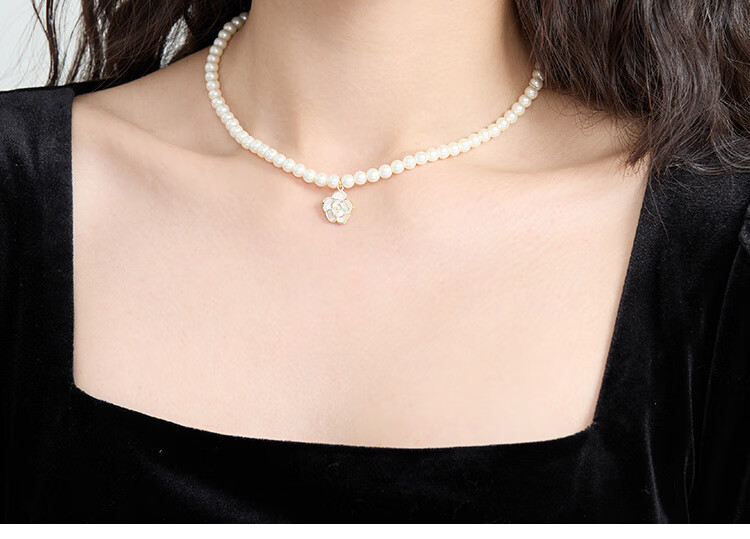 萱子(SHINE)饰品毛衣链颈链细小米珠山茶花珍珠项链轻奢小众新年礼物