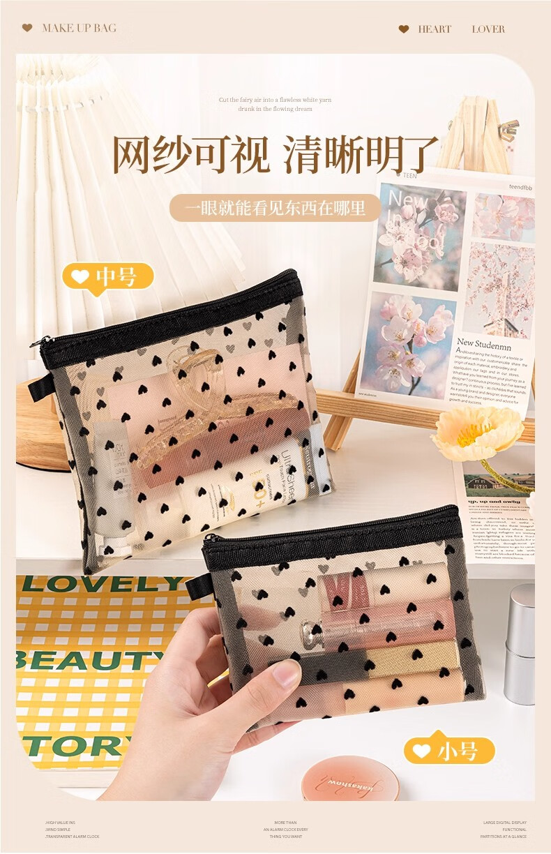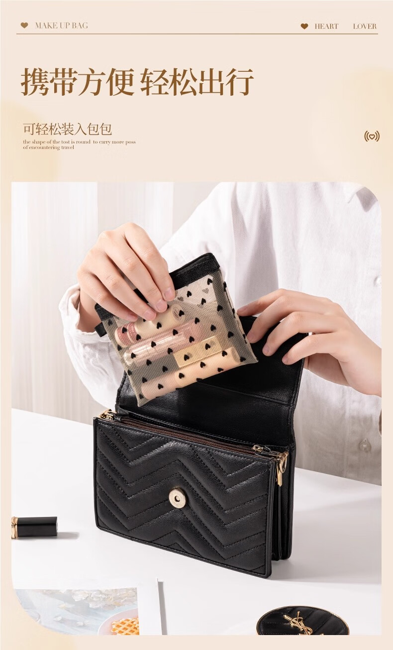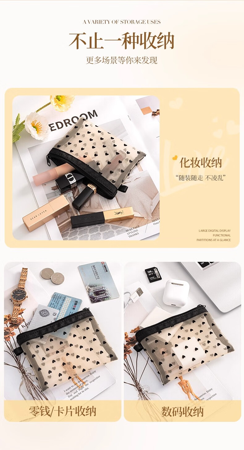小号化妆包口红补妆卡包网纱女2024新款便携式迷你包内随身收纳袋 淡黄色【小号】化妆品收纳包