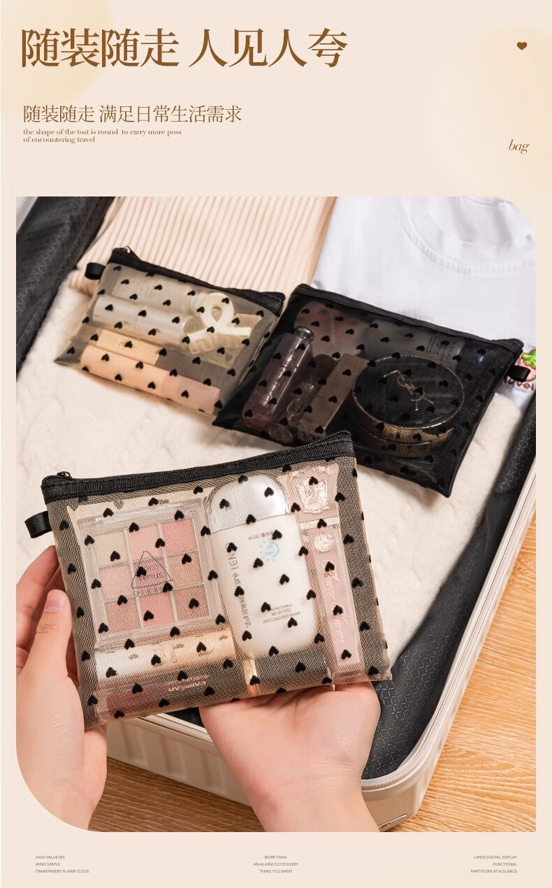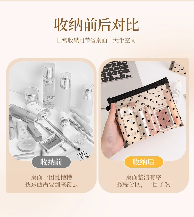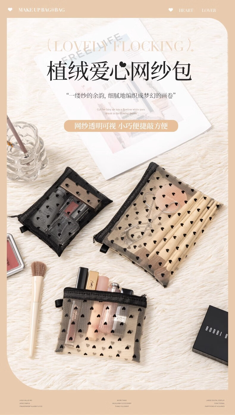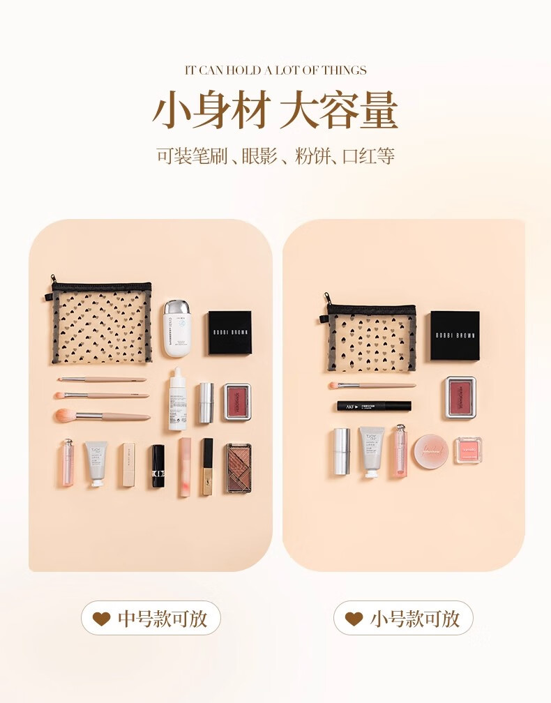 小号化妆包口红补妆卡包网纱女2024新款便携式迷你包内随身收纳袋 淡黄色【小号】化妆品收纳包