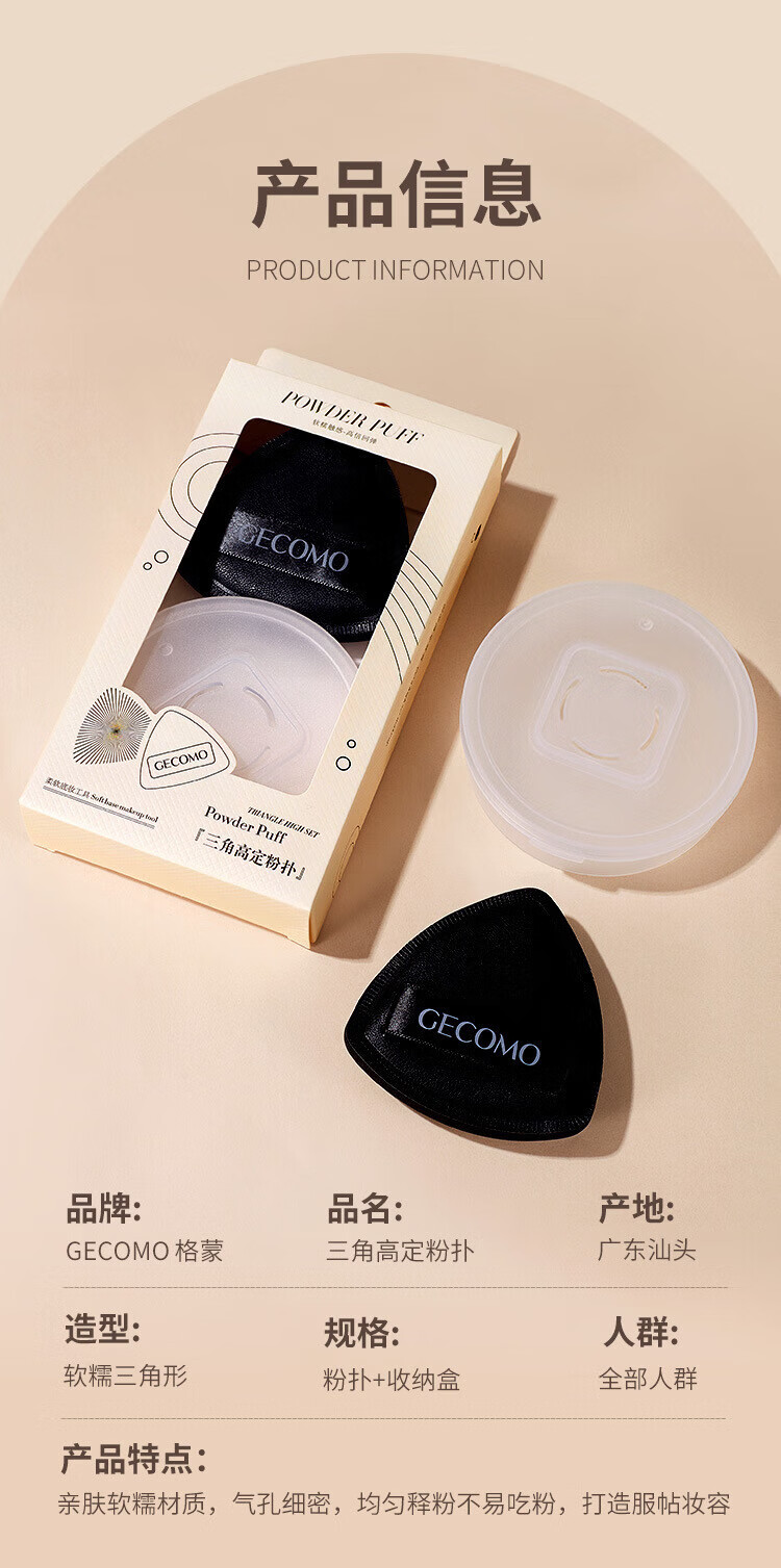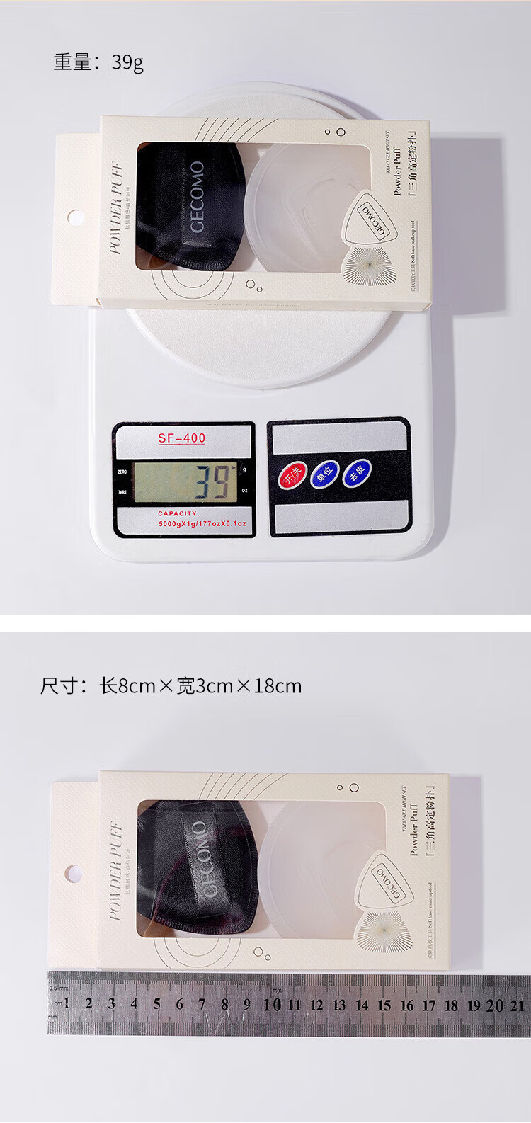 格蒙(GECOMO)格蒙三角高定黑粉扑干湿两用不吃粉遮瑕持妆海绵粉扑气 垫美妆蛋 三角高定黑粉扑 1个
