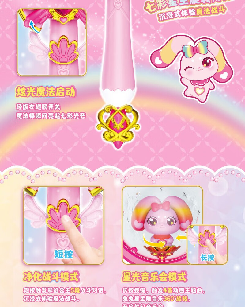 彩虹护卫队星光魔法棒兔兔星宝小女孩玩具公主变身宝盒仙女棒礼物 彩虹公主星光魔法棒