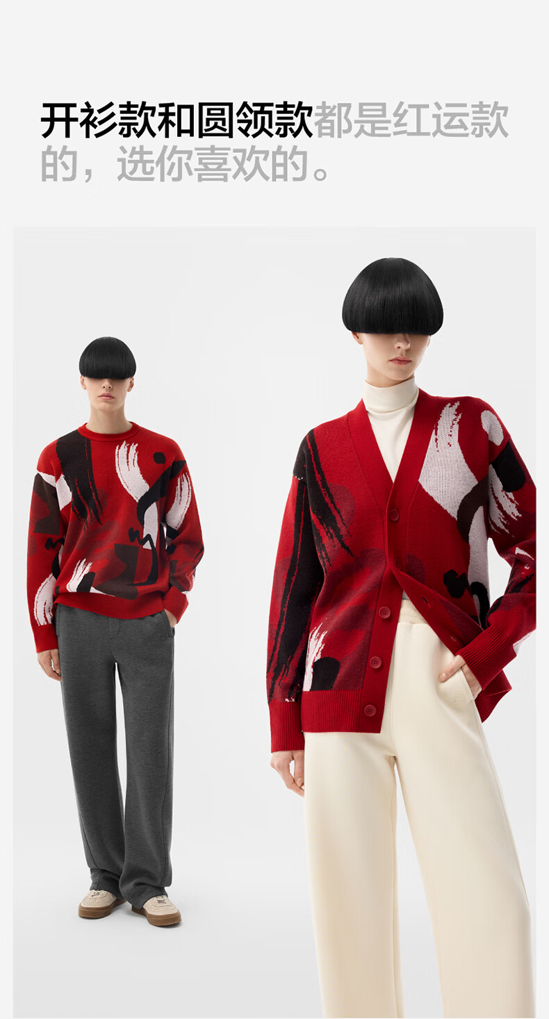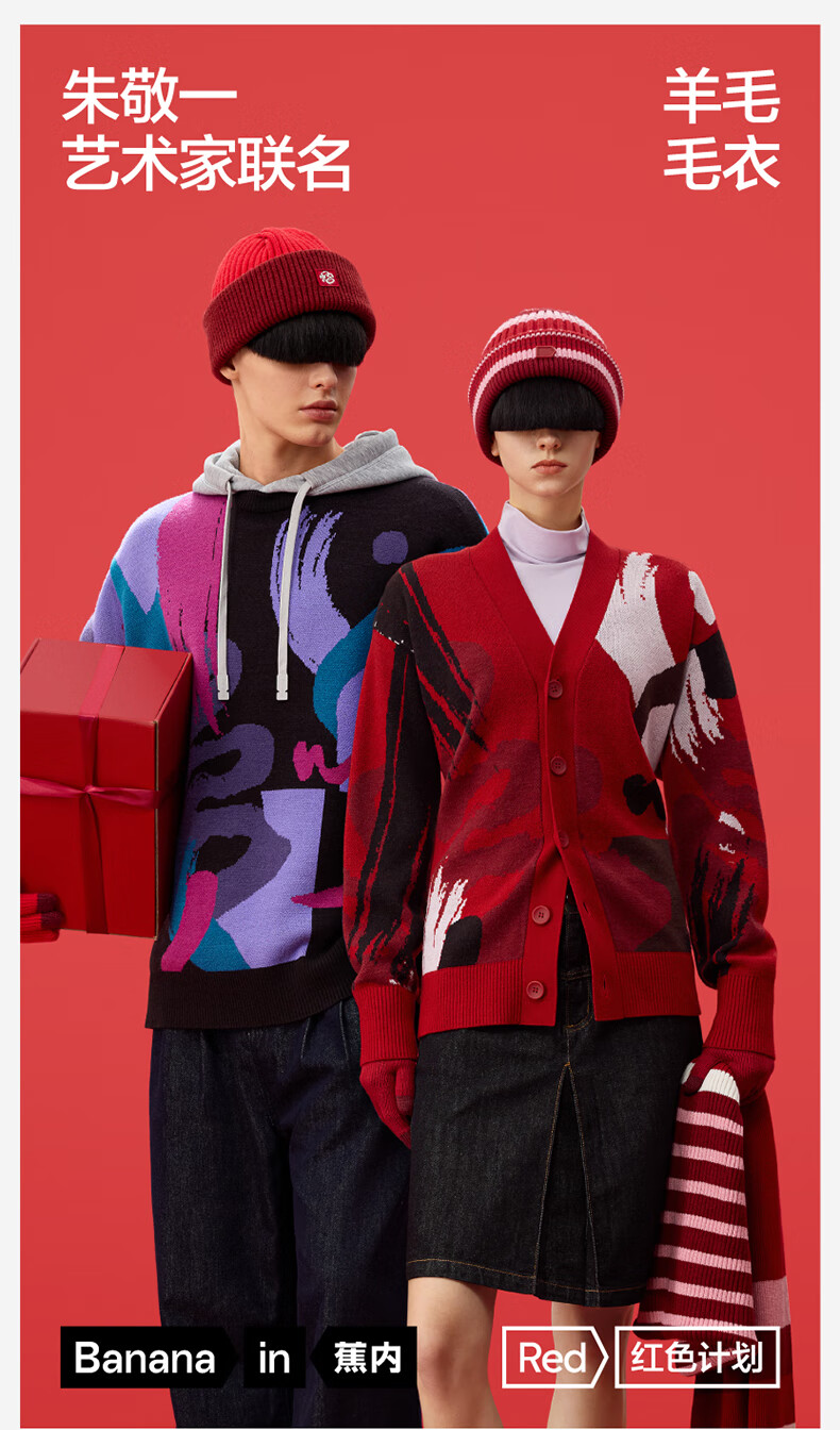 蕉内王一博同款红色计划朱敬一联名男女同款套头毛衣羊毛开衫本命蛇年