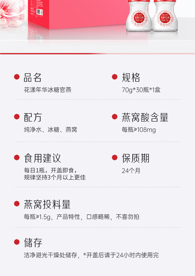 燕之屋即食燕窝新年礼物年货节礼盒过年走亲戚礼盒送礼送长辈70g*30瓶