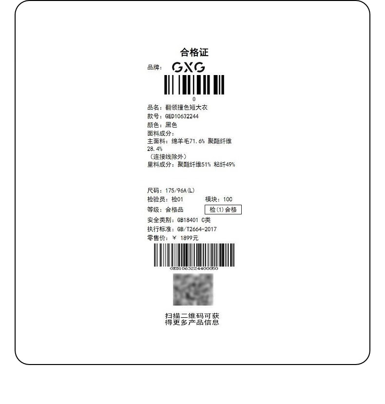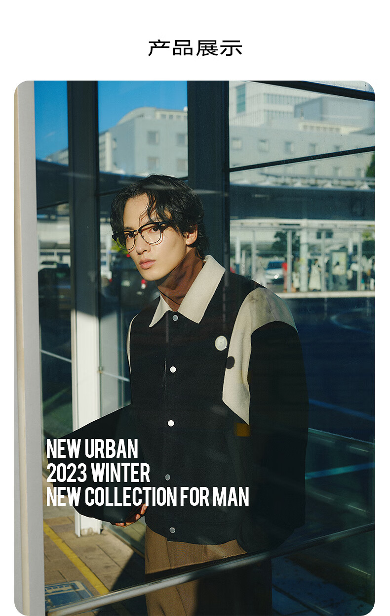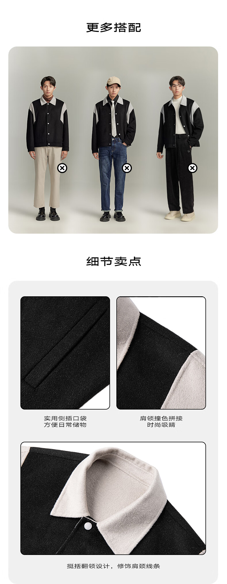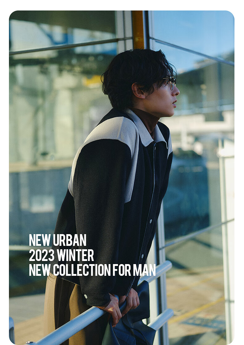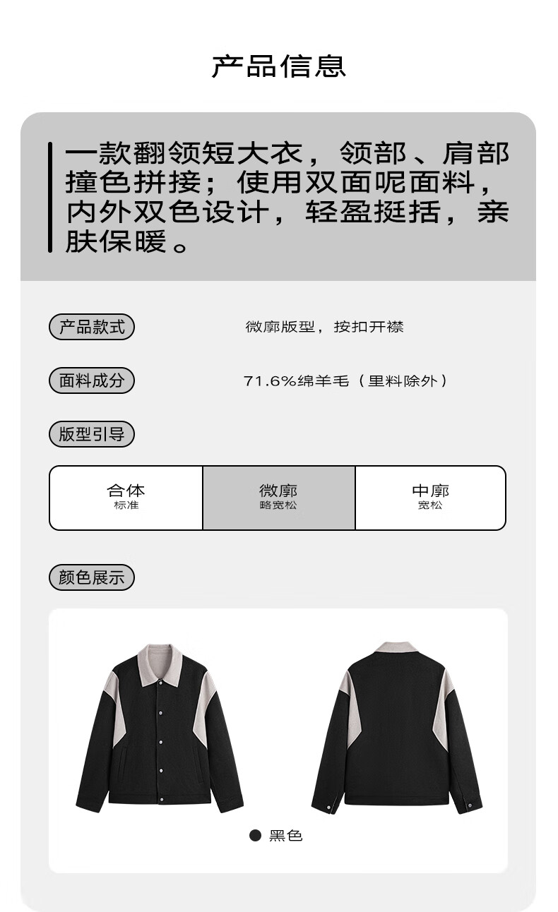 GXG奥莱 黑色撞色拼接设计翻领毛呢大衣外套男士 2023年冬季新款 黑色 175/L
