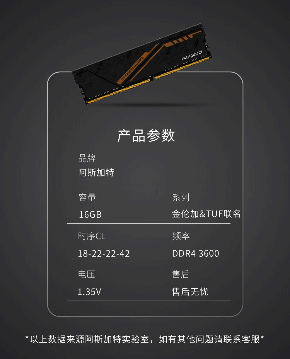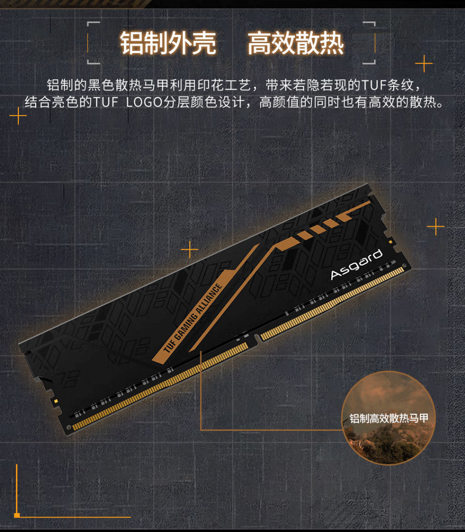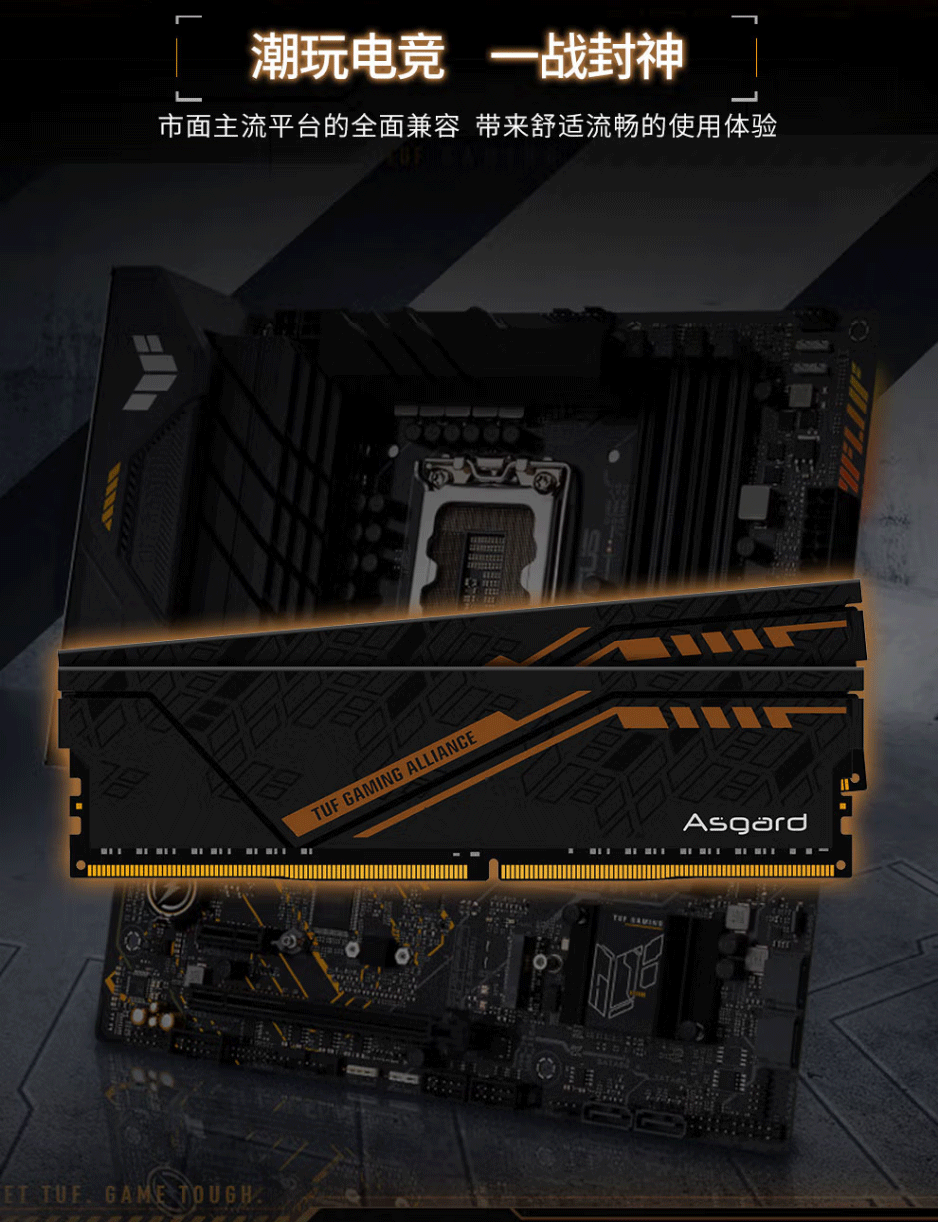 阿斯加特(Asgard)16GB DDR4 3600 台式机内存条 金伦加&TUF联名款 马甲条 精选颗粒 CL18 黑橙甲