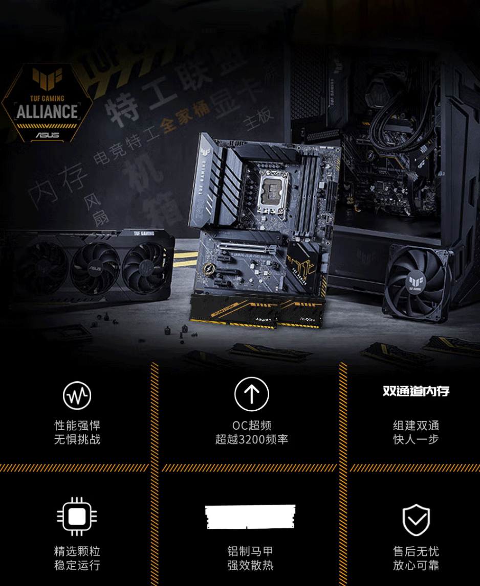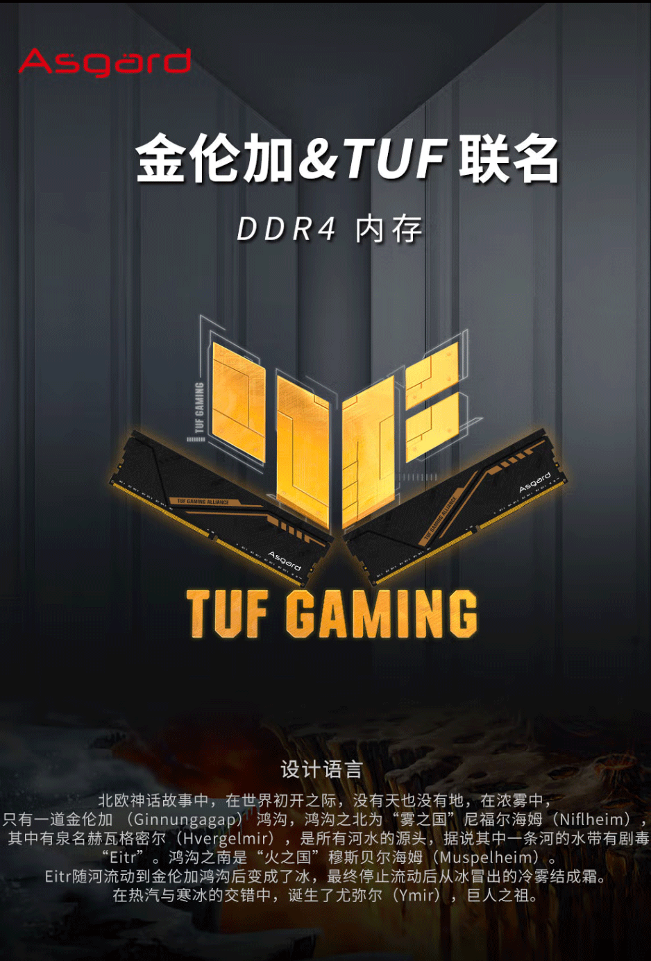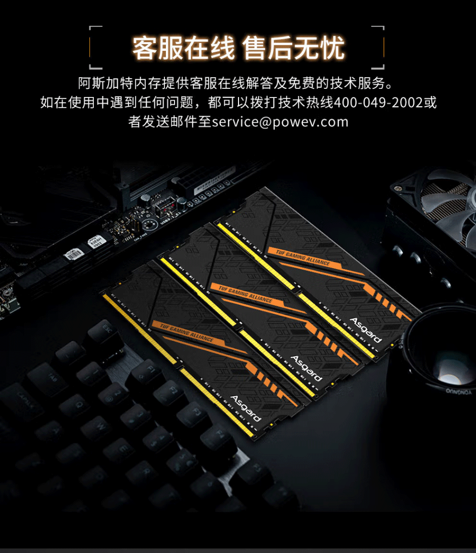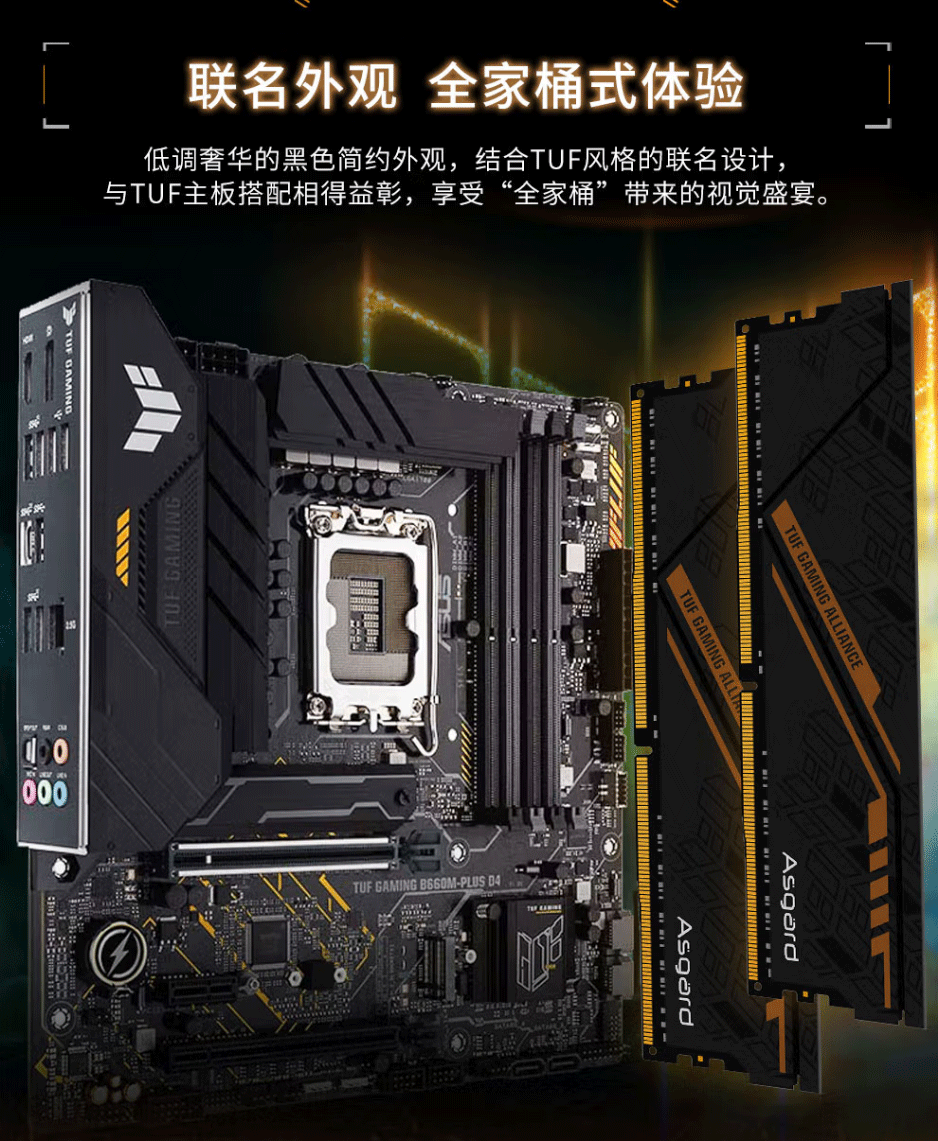 阿斯加特(Asgard)16GB DDR4 3600 台式机内存条 金伦加&TUF联名款 马甲条 精选颗粒 CL18 黑橙甲