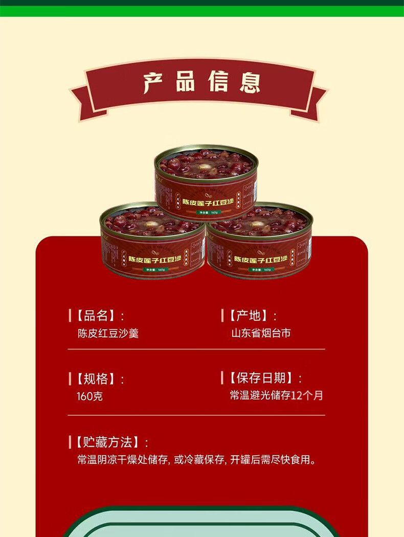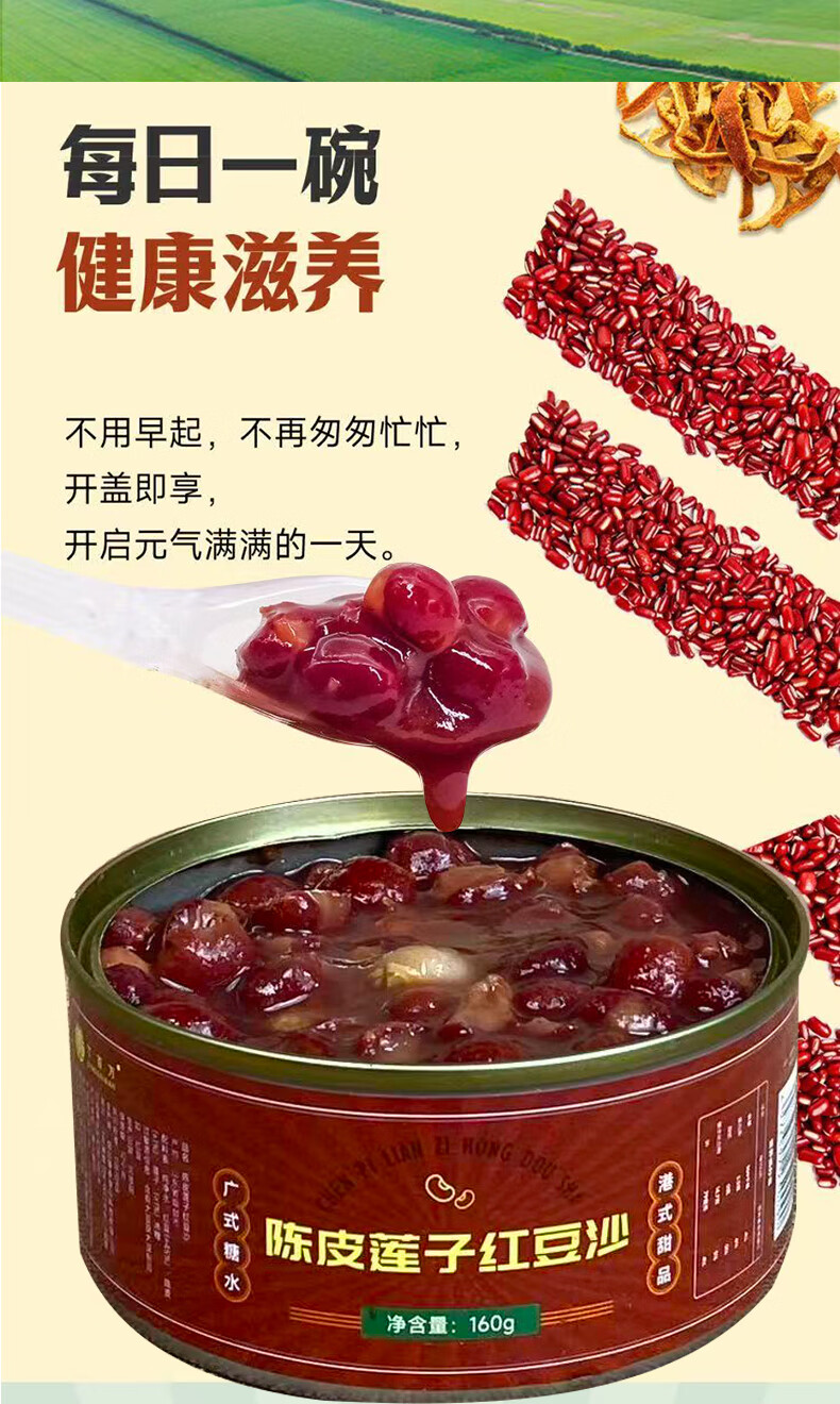 陈皮红豆羹即食罐头烘焙食品五谷早餐免煮速食粥免甜品便携 陈皮红豆沙羹160g*3罐