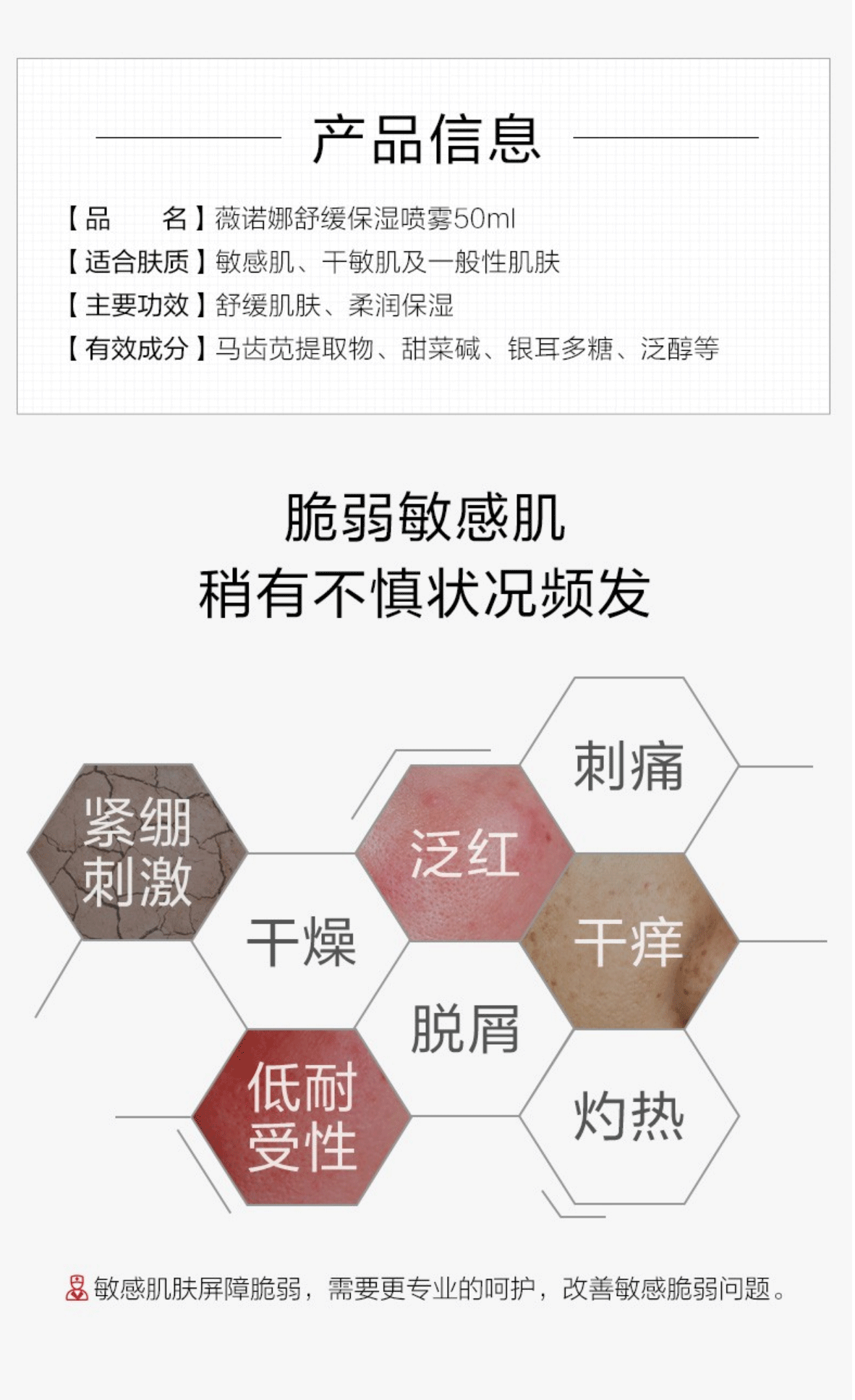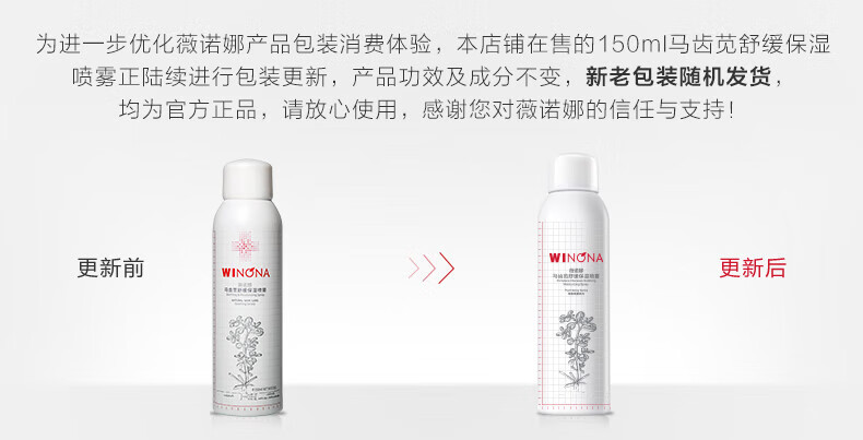 薇诺娜(WINONA)马齿苋舒缓保湿喷雾150ml敏肌修护爽肤化妆水补水男女士新年