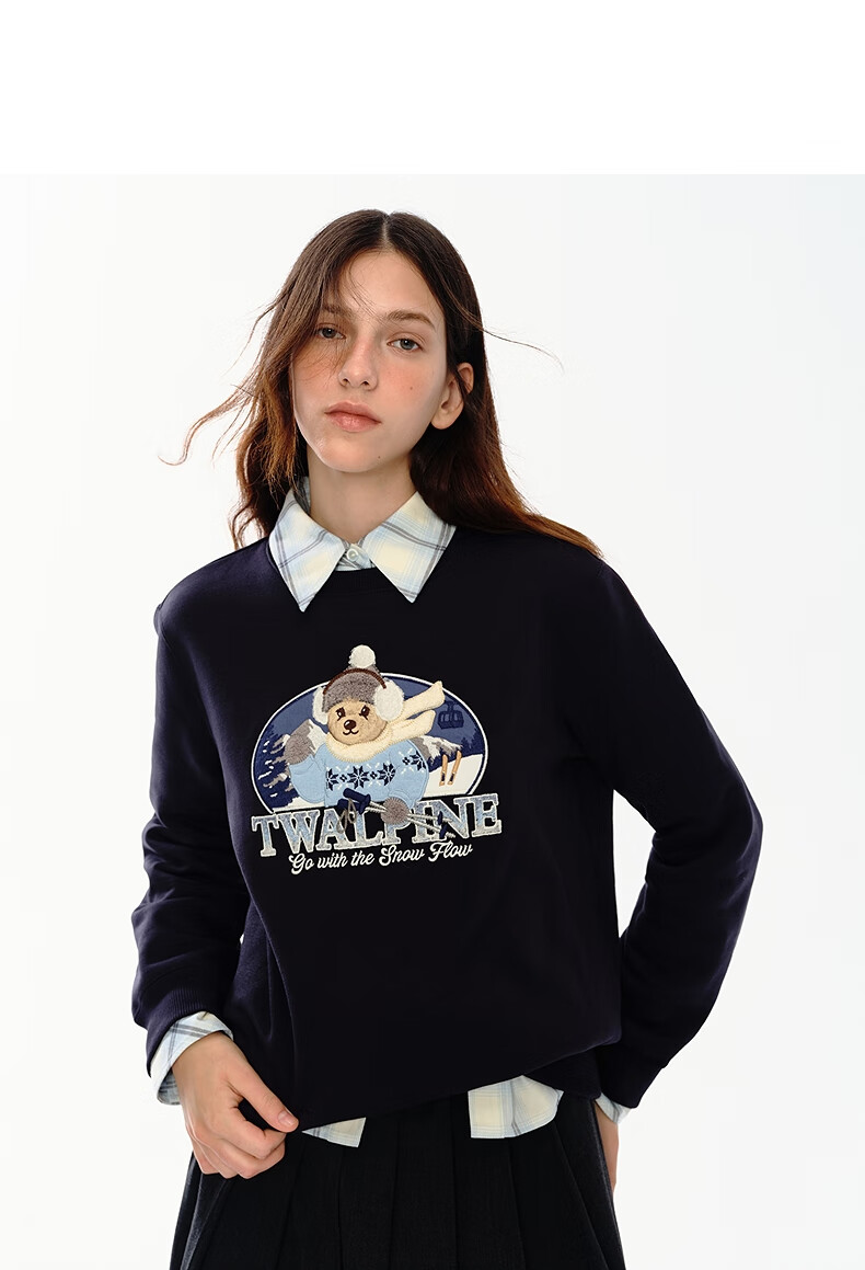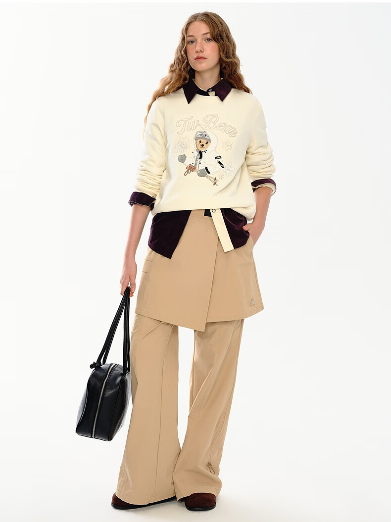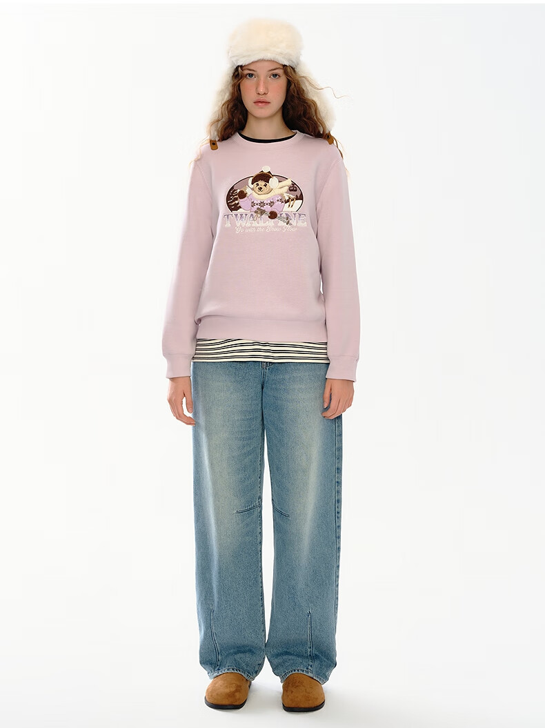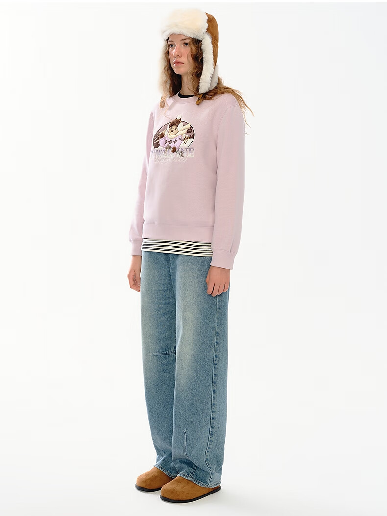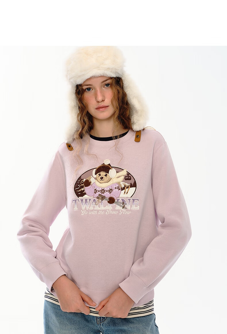 Teenie Weenie小熊女装卫衣2025冬季新款休闲舒适大熊刺绣圆领上衣 浅紫色 S