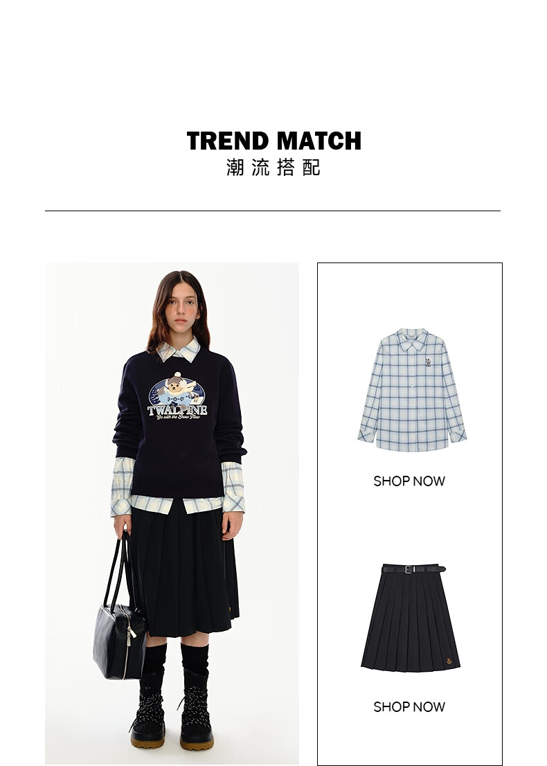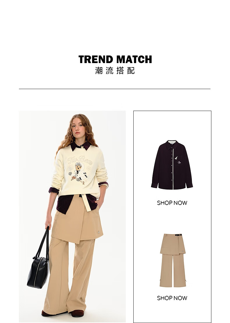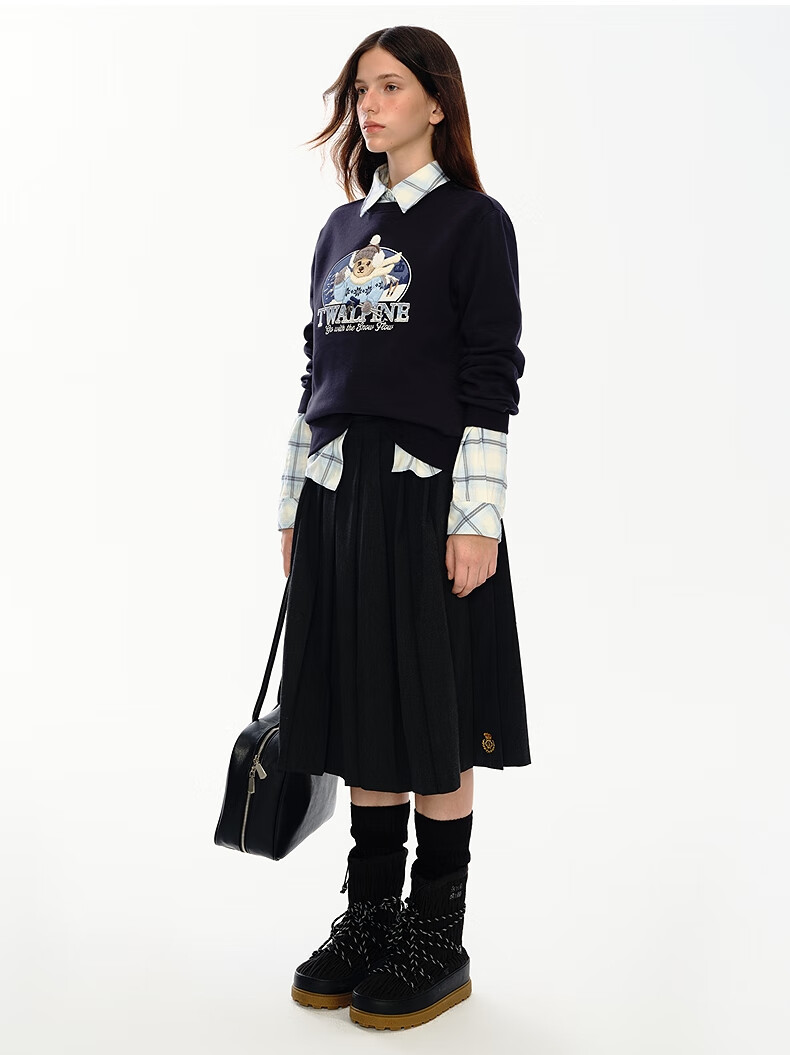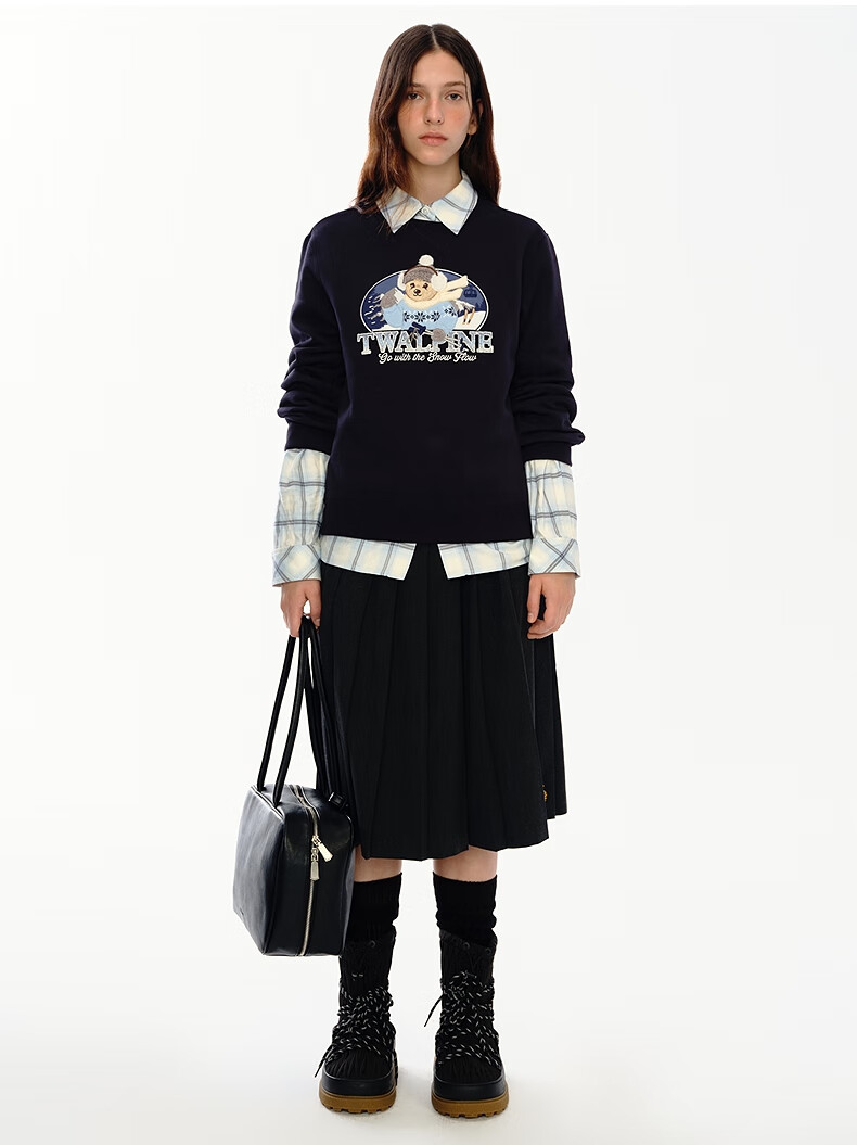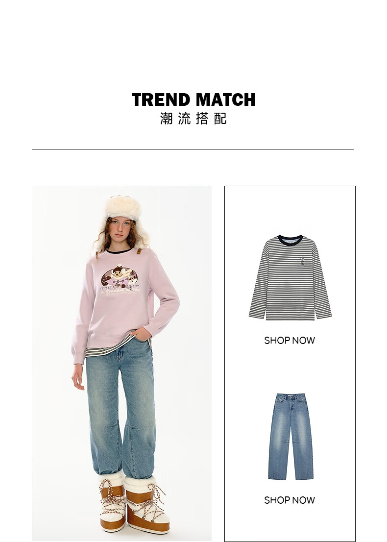Teenie Weenie小熊女装卫衣2025冬季新款休闲舒适大熊刺绣圆领上衣 浅紫色 S