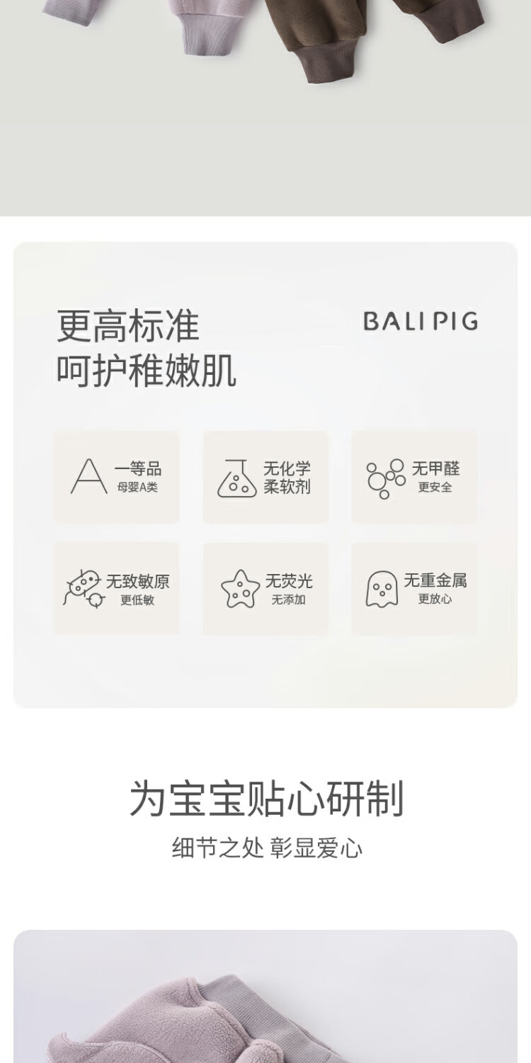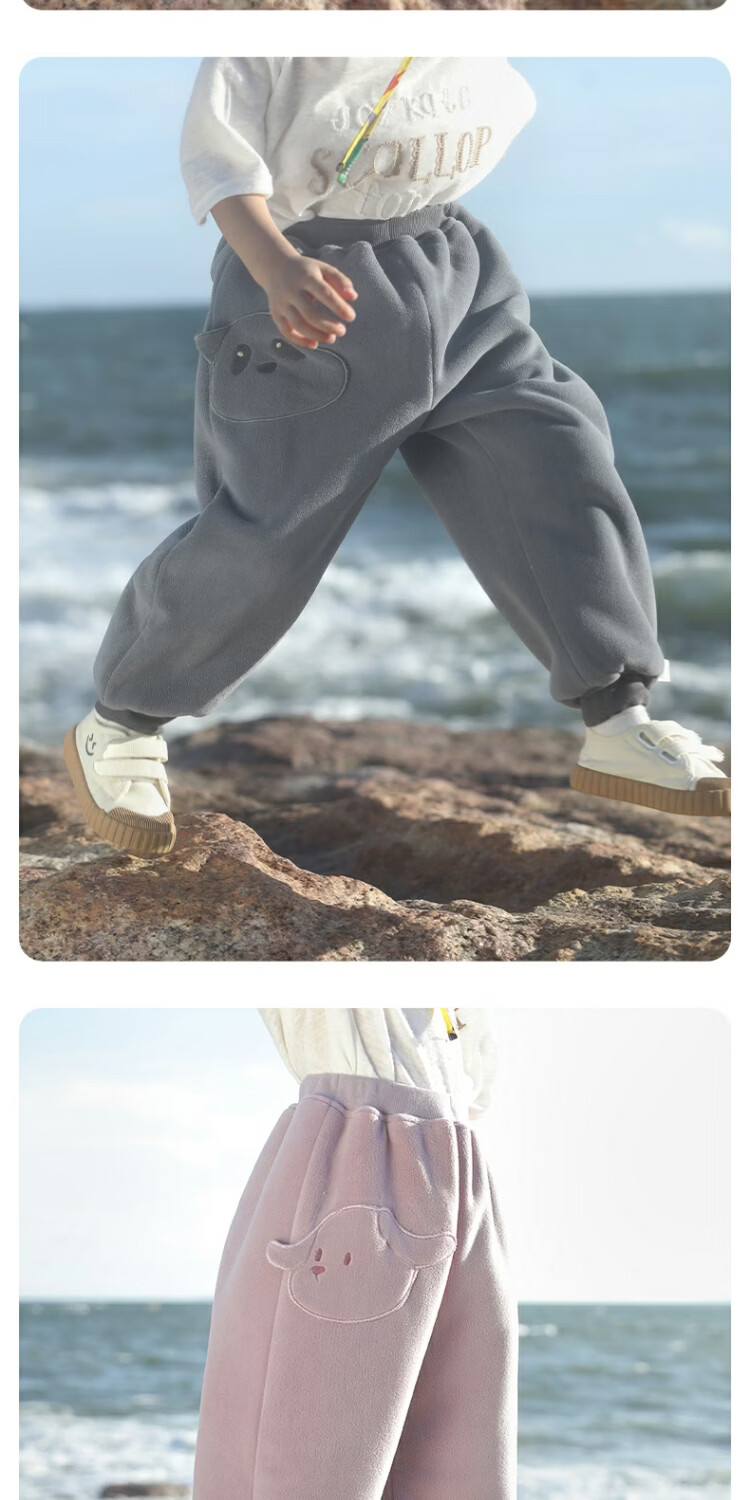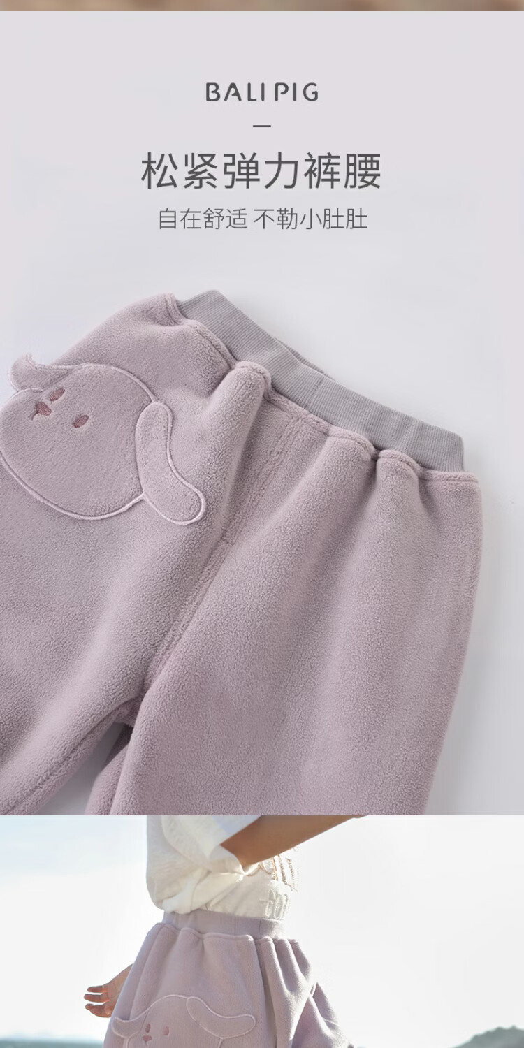 巴厘小猪【双面绒】儿童羊羔绒裤子秋冬宝宝加绒保暖裤男童加厚女童休闲裤 太空灰 90