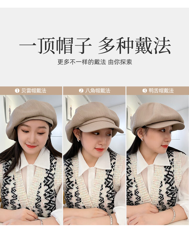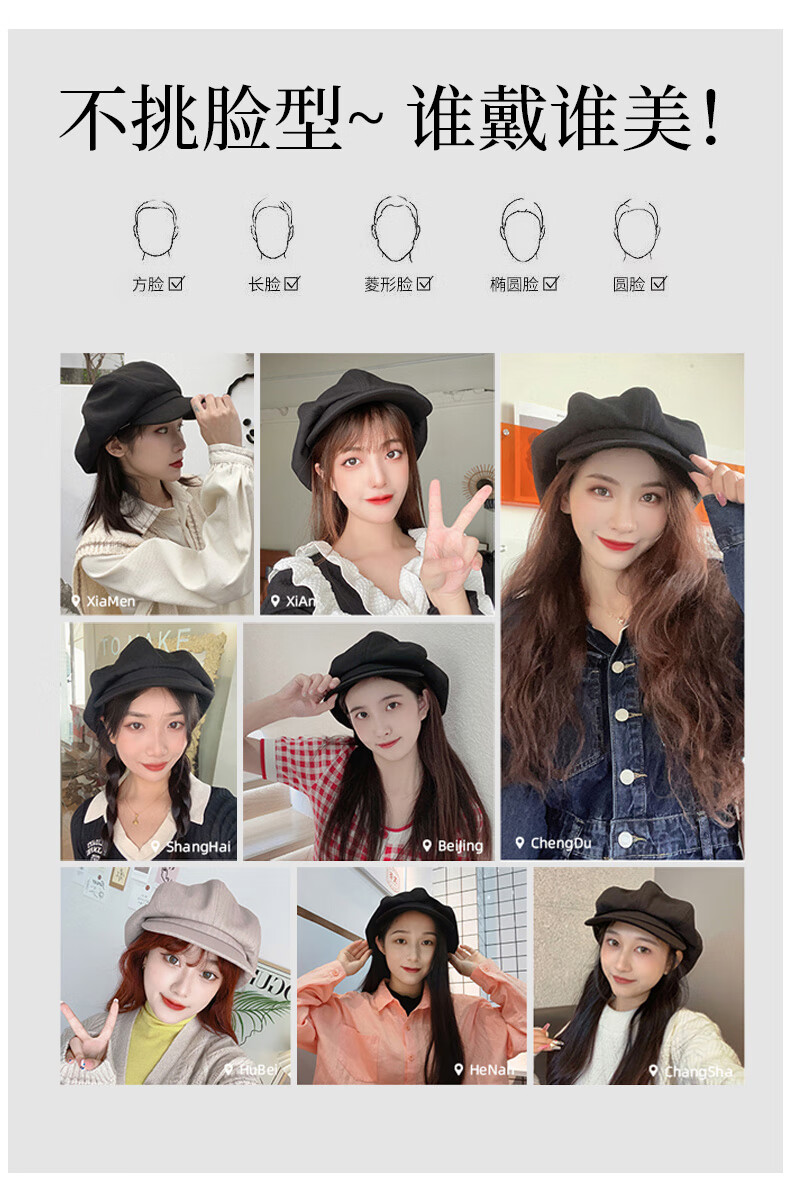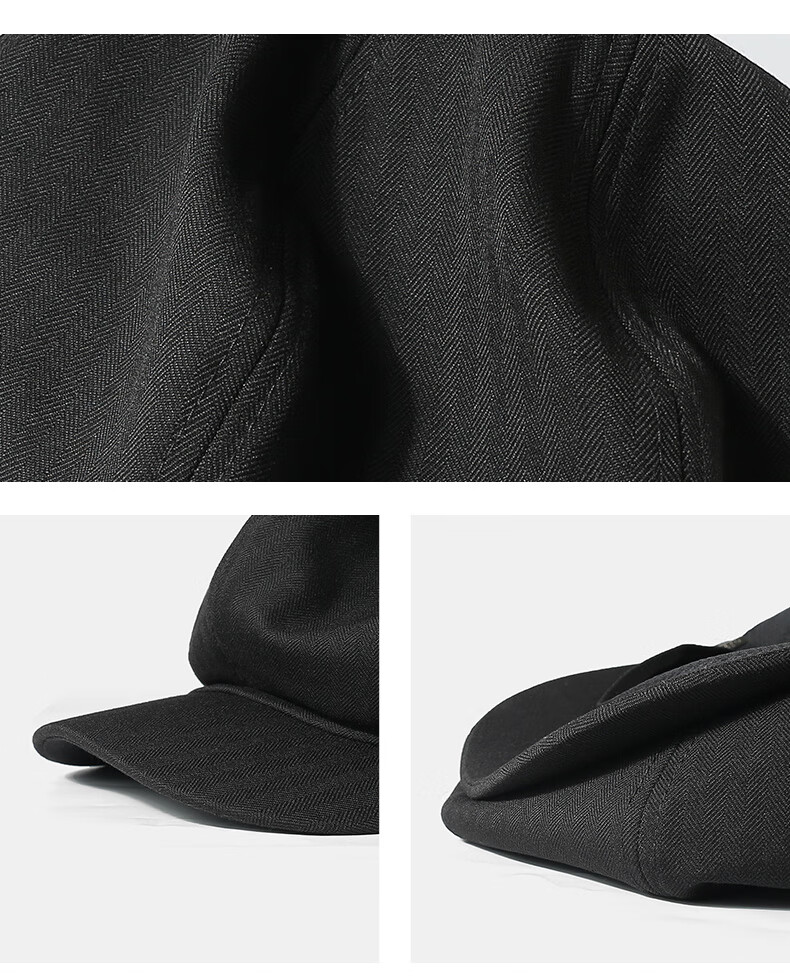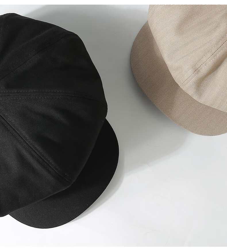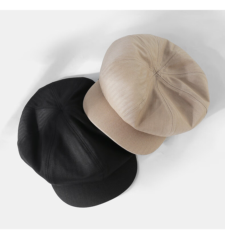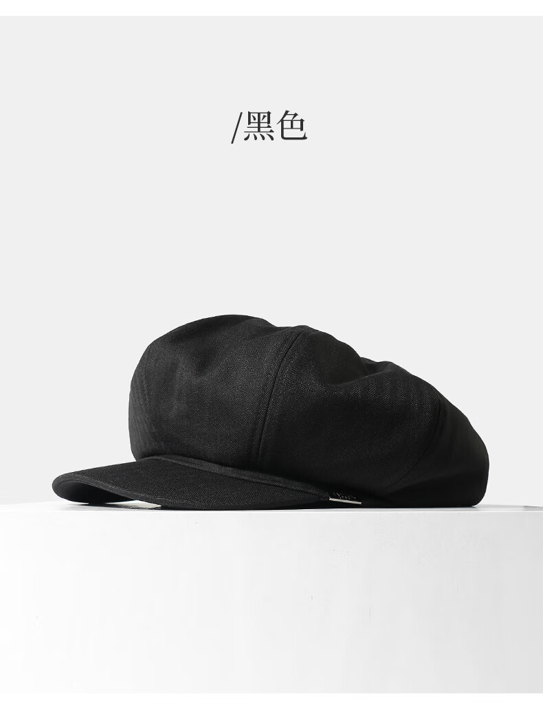 CACUSS贝雷帽女八角帽画家帽大头围云朵帽显脸小帽子女 黑色