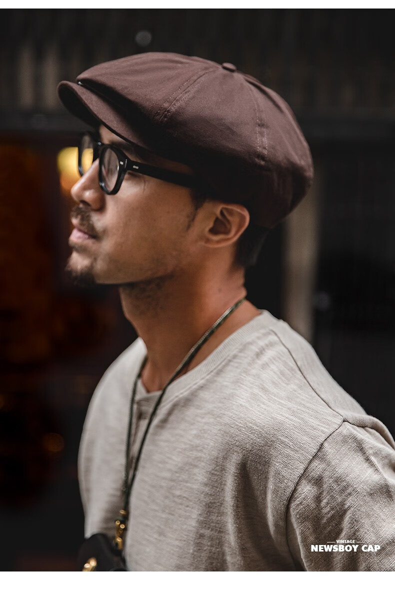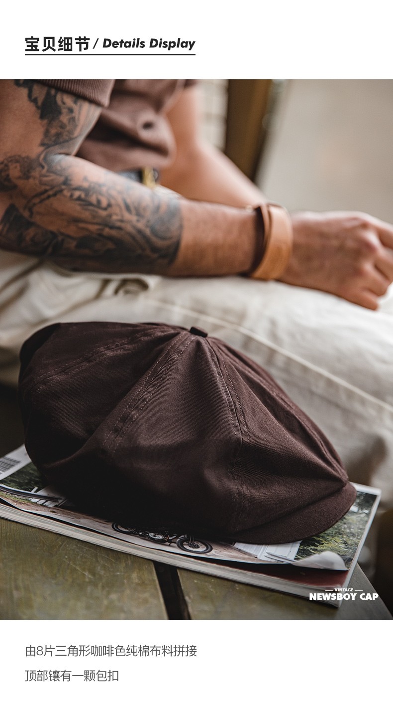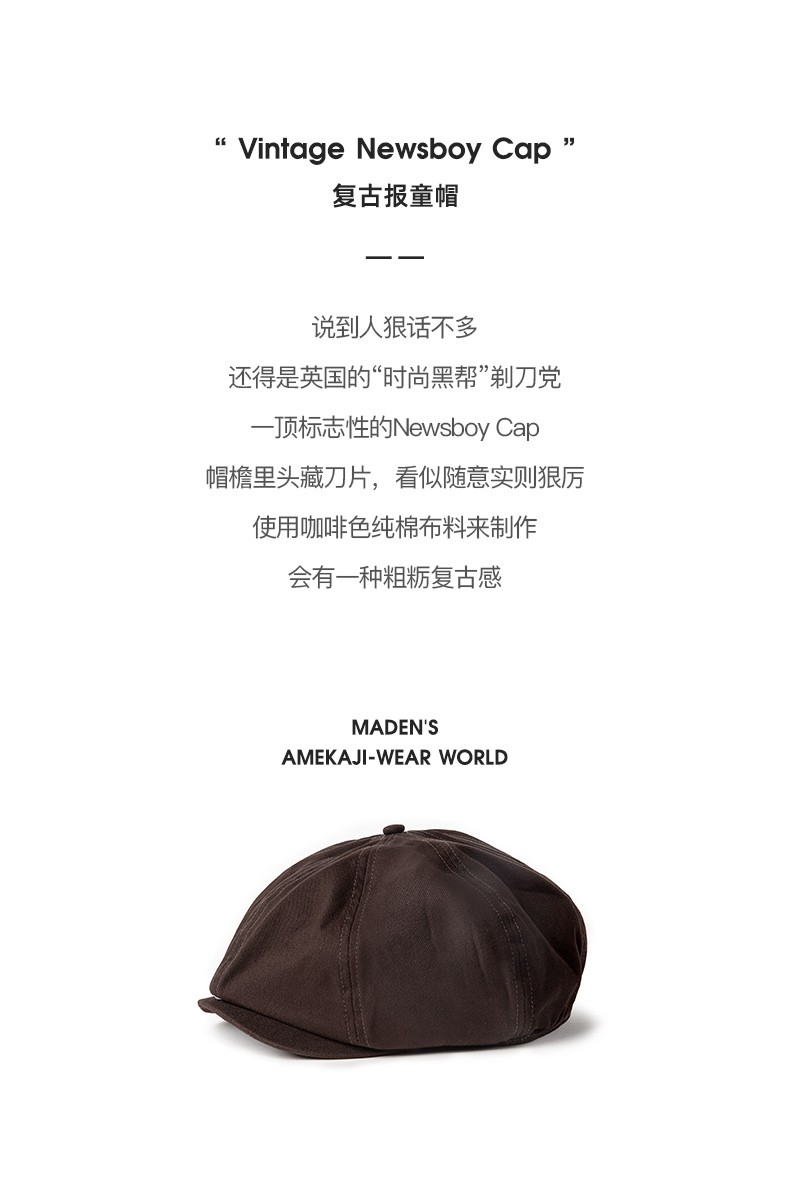 马登工装复古剃刀党油蜡报童帽情侣贝雷画家帽八角浴血黑帮刀片帽子男 咖啡色 M (头围57-59cm)