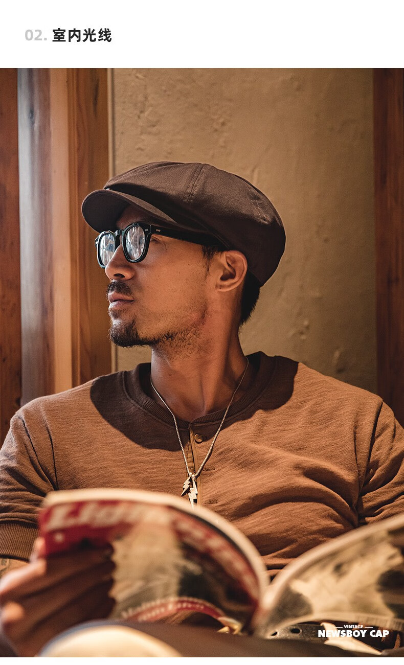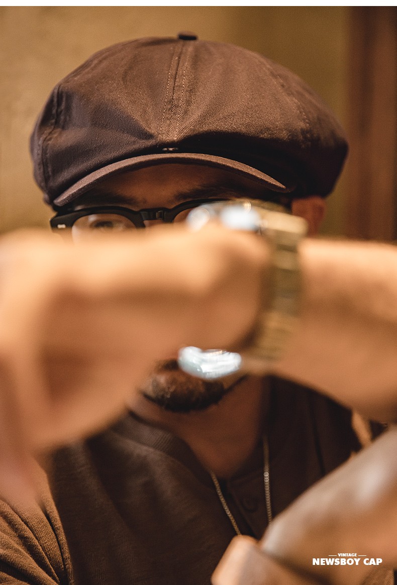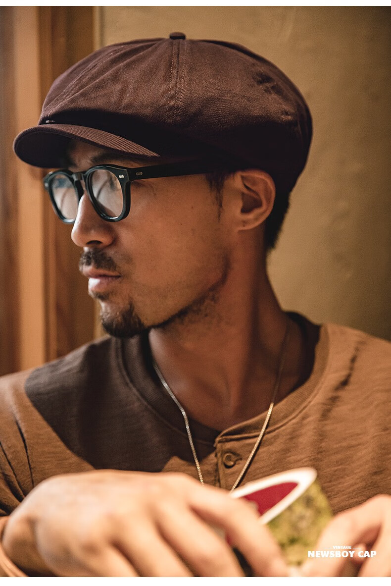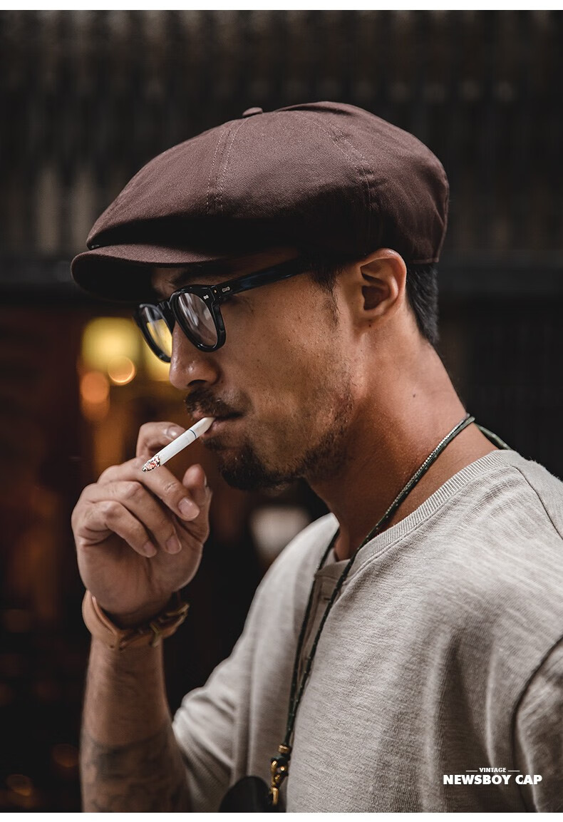 马登工装复古剃刀党油蜡报童帽情侣贝雷画家帽八角浴血黑帮刀片帽子男 咖啡色 M (头围57-59cm)