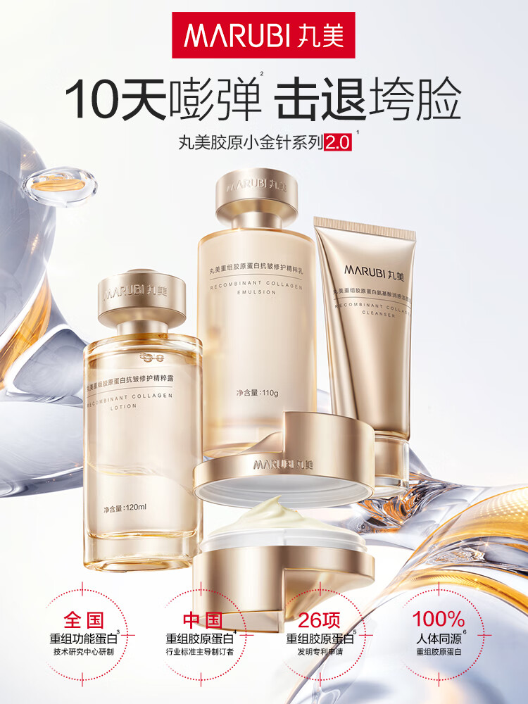 丸美双胶原小金针水乳护肤品套装紧致抗皱淡化补水保湿细纹旅行装试用 【超值到手9件】双胶原水乳霜