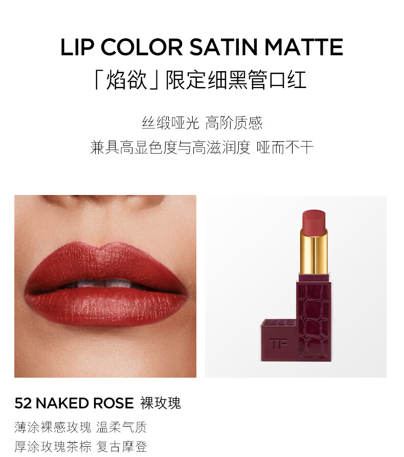 TOM FORD焰欲限定TF细黑管52裸玫瑰丝缎哑光 TF口红 唇膏化妆品生日礼物女