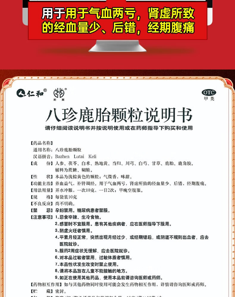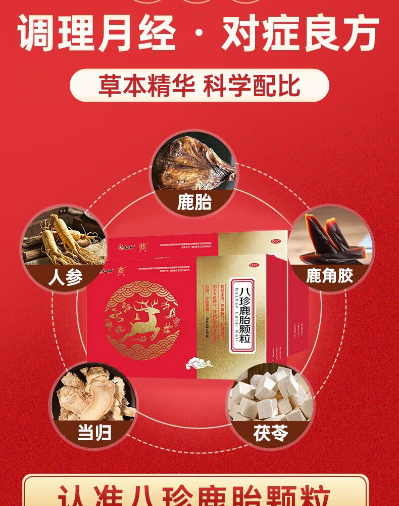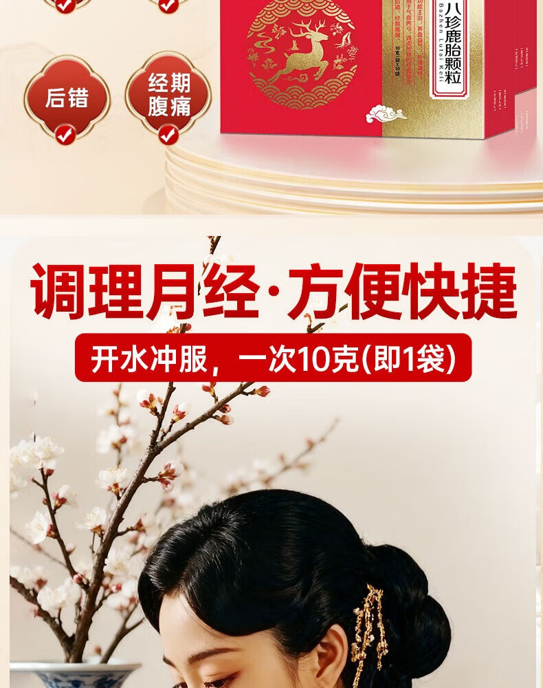 [仁和]八珍鹿胎颗粒 10g*10袋 1盒装 仁和八珍鹿胎颗粒补气益血调经月经不调量少正品