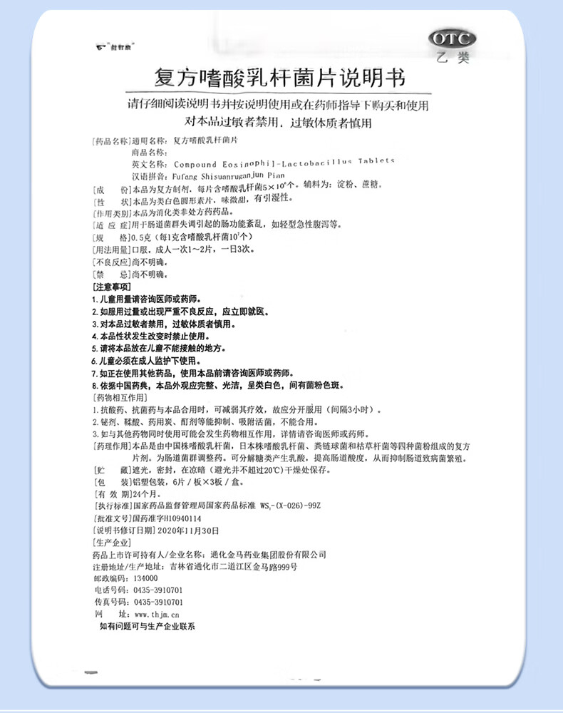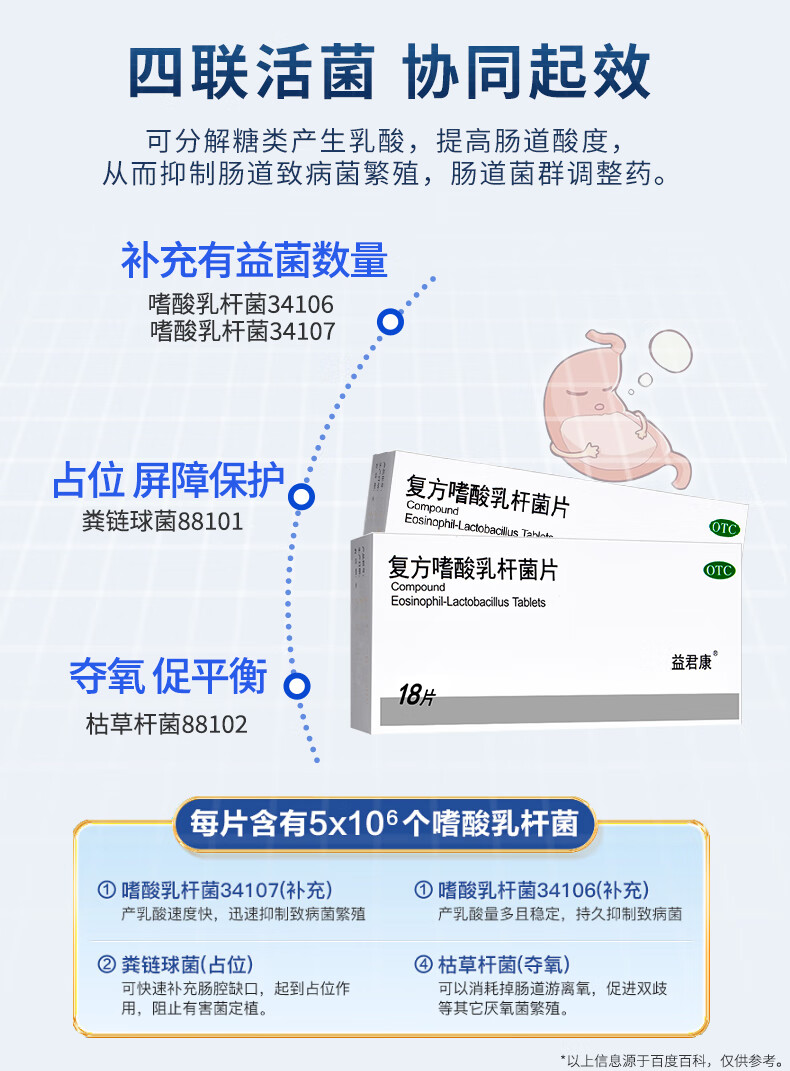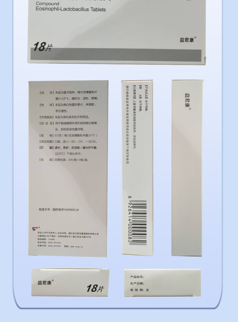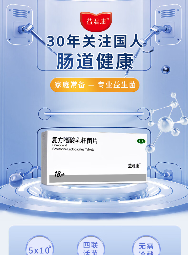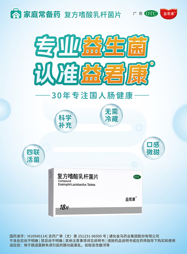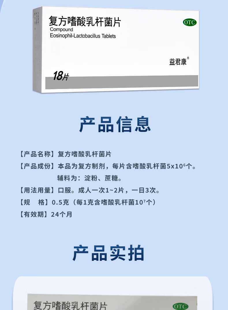 益君康 复方嗜酸乳杆菌片 0.5g*18片肠道菌群失调肠功能紊乱急性腹泻补充益生菌