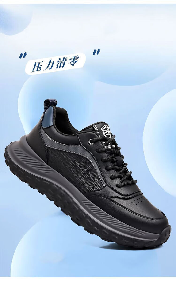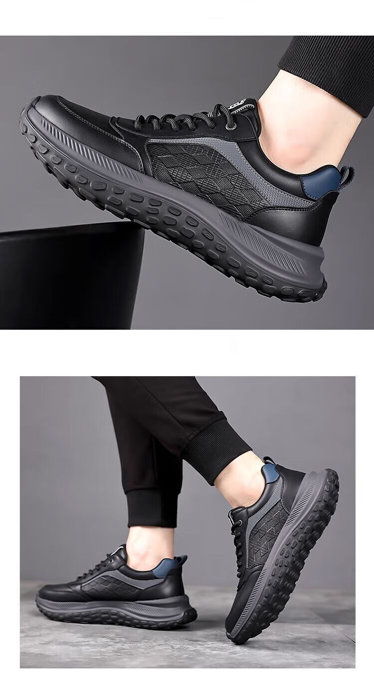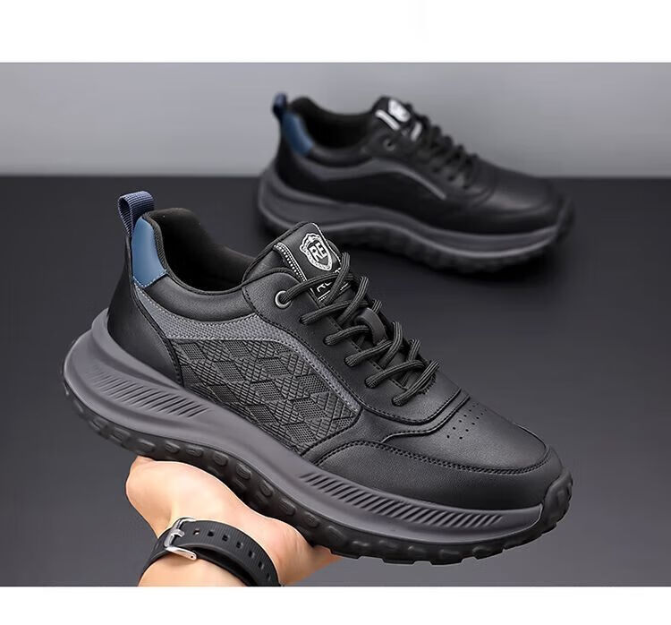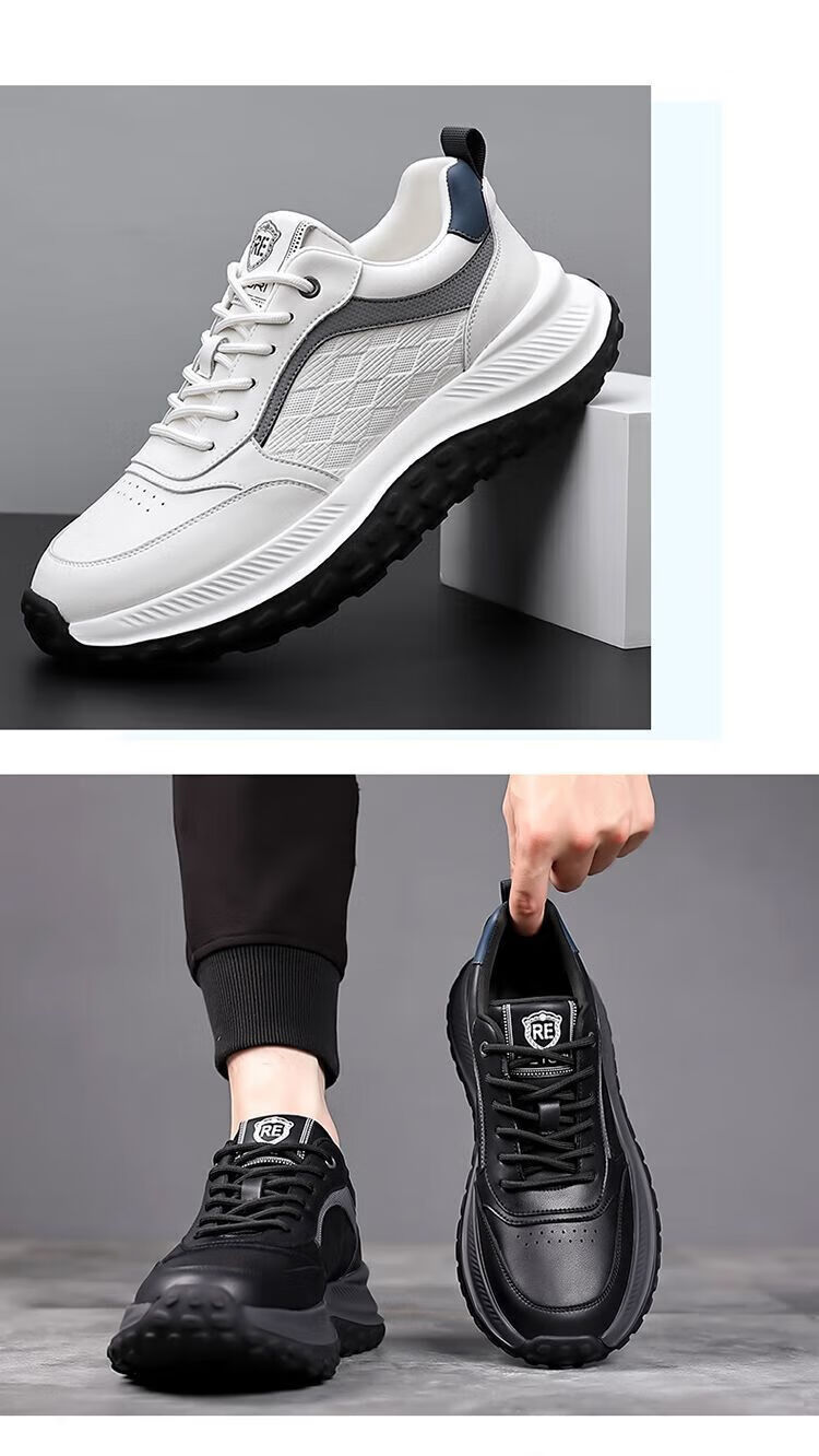 SUSTYLE国际一线品牌四季百搭休闲时尚真皮运动鞋男士防滑潮流百搭老爹鞋 黑色 38