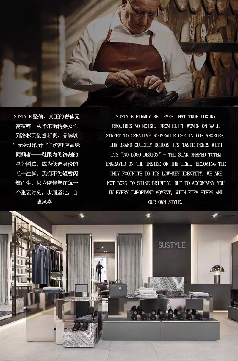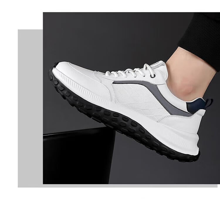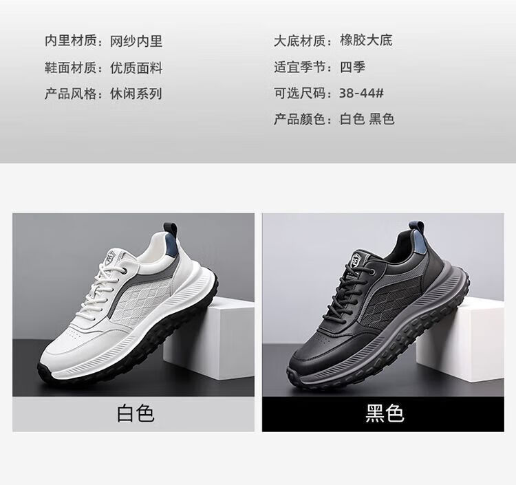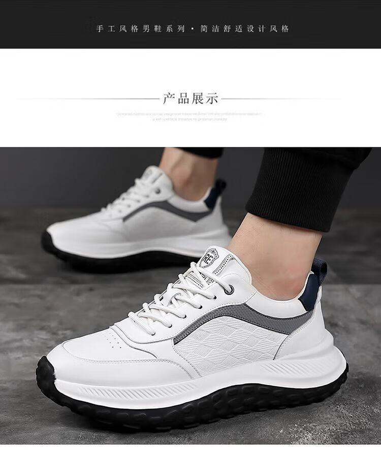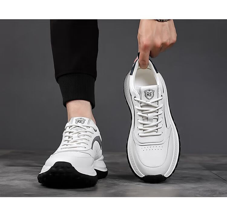 SUSTYLE国际一线品牌四季百搭休闲时尚真皮运动鞋男士防滑潮流百搭老爹鞋 黑色 38