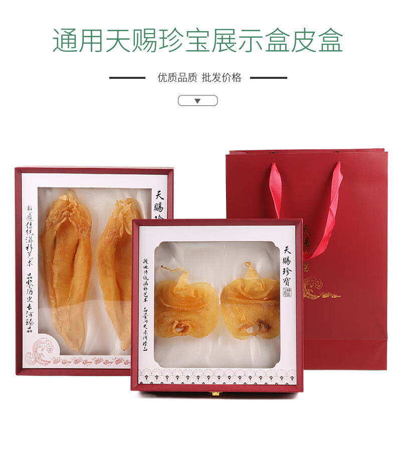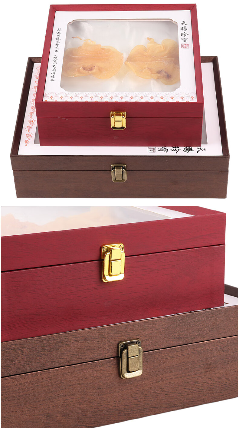 狮晓新款鱼胶包装盒礼盒空盒鳘鱼胶鲍鱼山参收藏盒展示礼品盒空盒 红色款正方形皮盒