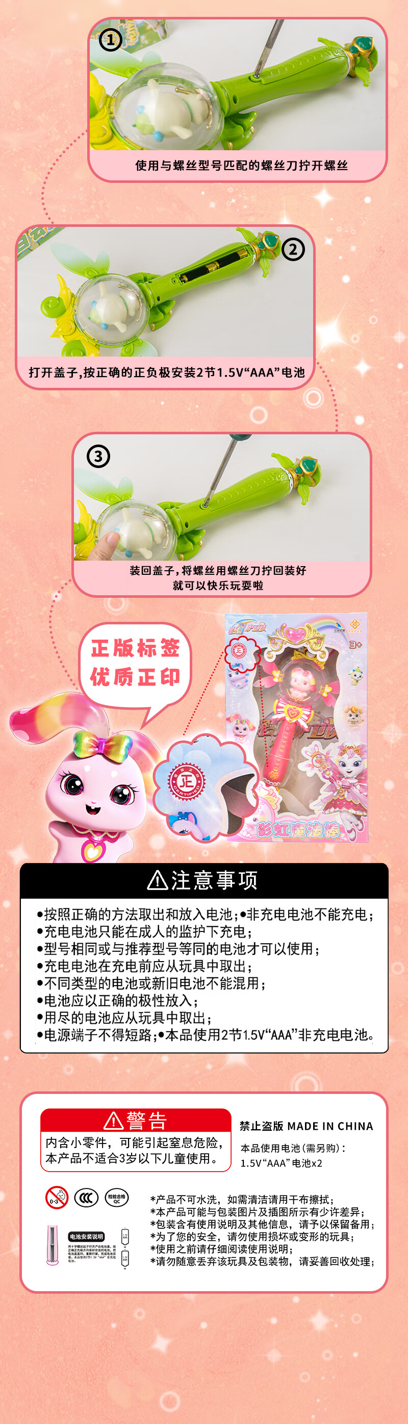 梵思奇彩虹护卫队彩虹魔法棒玩具旋转发光兔兔星宝毛绒魔仙公主儿童女孩 新品【彩虹魔法棒】律动声光版