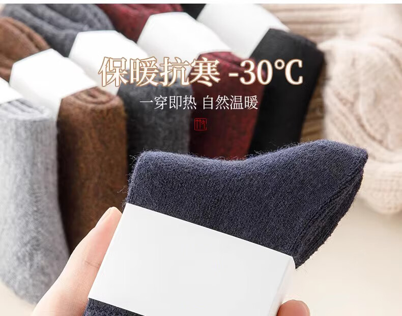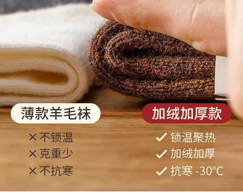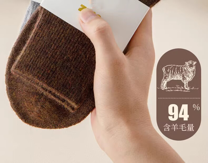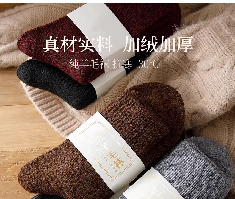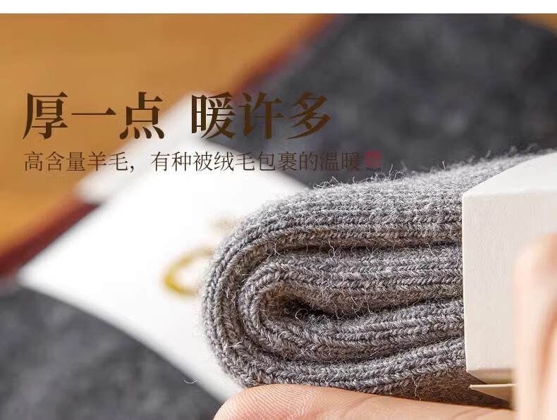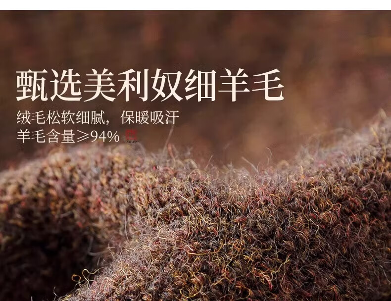 俞兆林94%羊毛袜男士秋冬季加厚加绒保暖地板袜毛圈美利奴羊绒袜子长袜