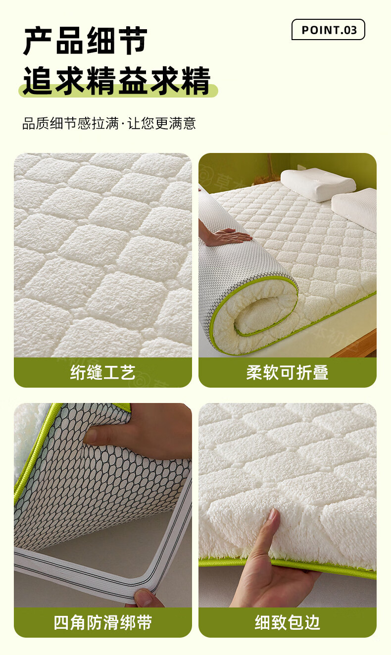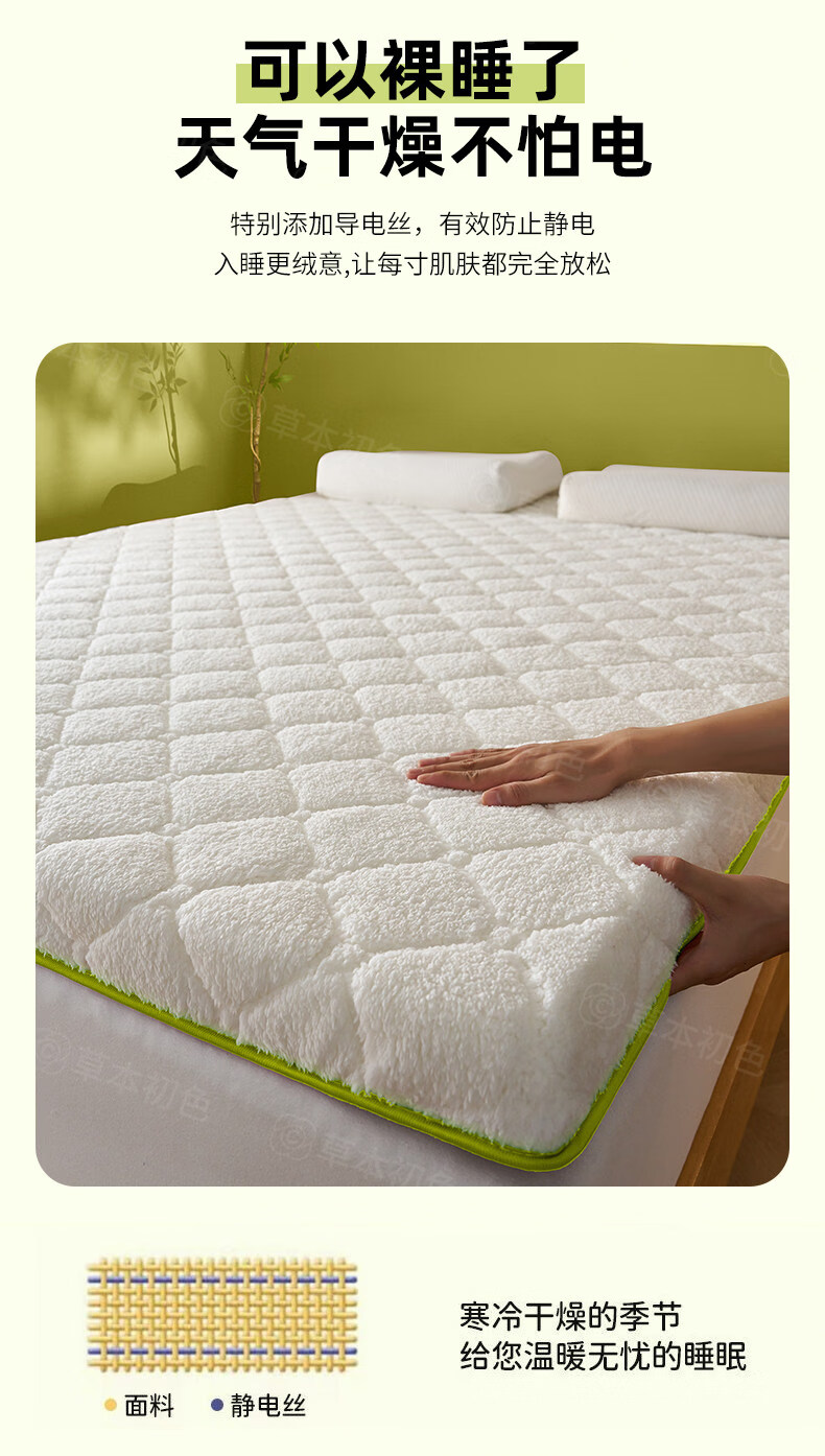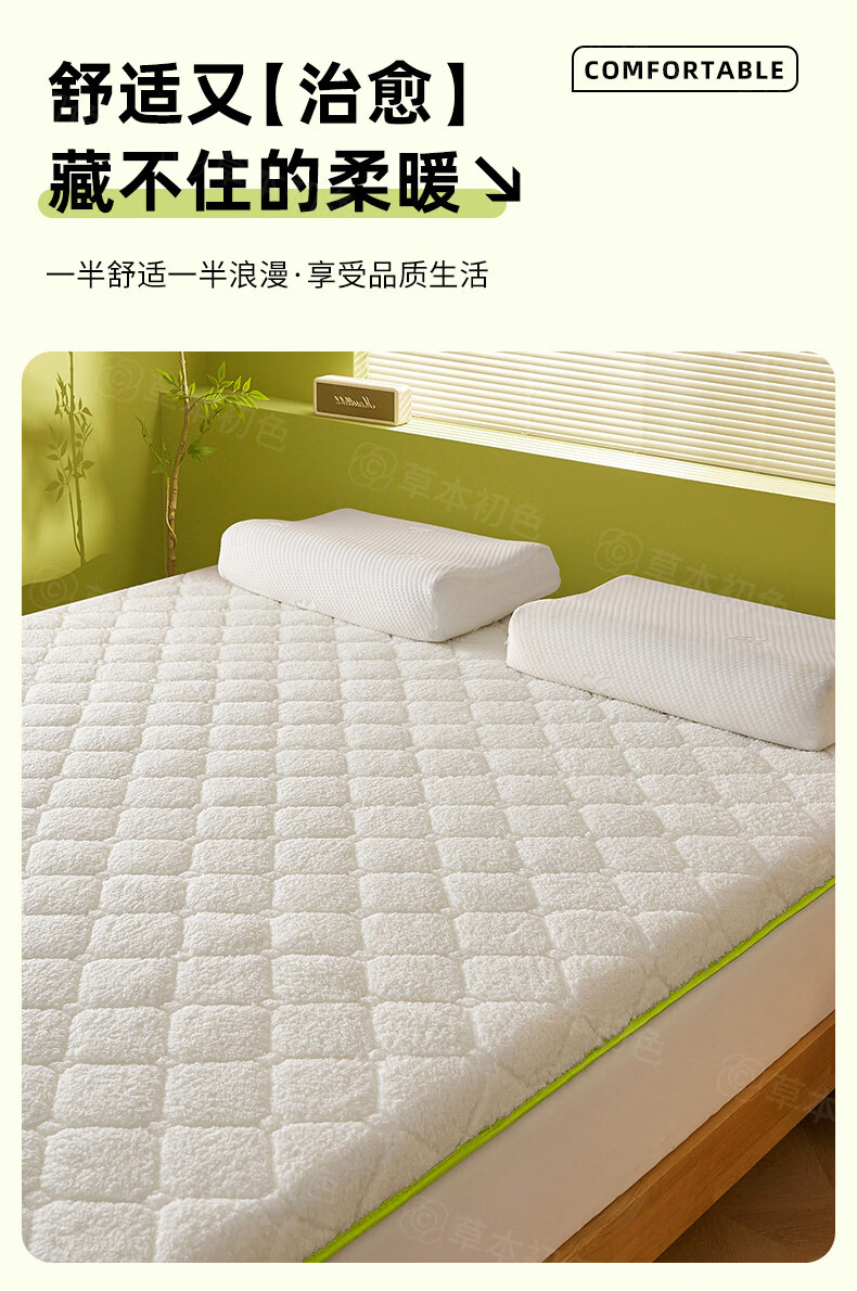 草本初色羊羔绒床垫软垫家用秋冬季加厚学生宿舍单人记忆海绵保暖被褥垫子 【经典款2.0Pro】草本绿厚约5cm【大朵羊羔绒 宿舍床:90x190cm【分区承托___抗压护脊丨