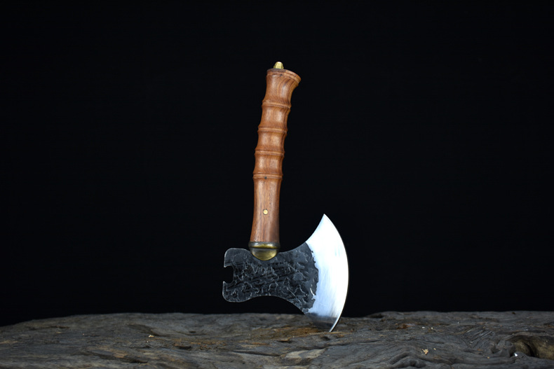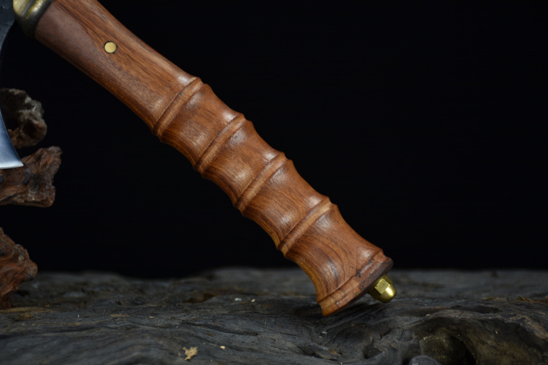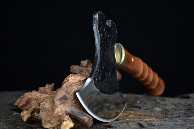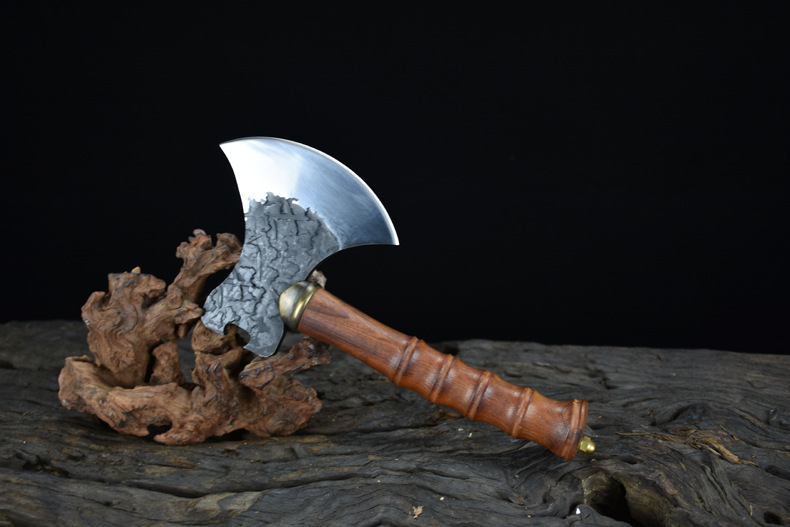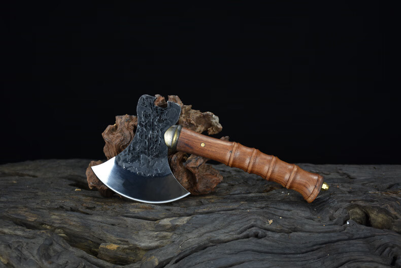 龙虎斩龙泉手工锻打砍骨斧户外生存战斧家用锋利斩骨刀剁骨刀砍树劈柴刀 牛头战斧