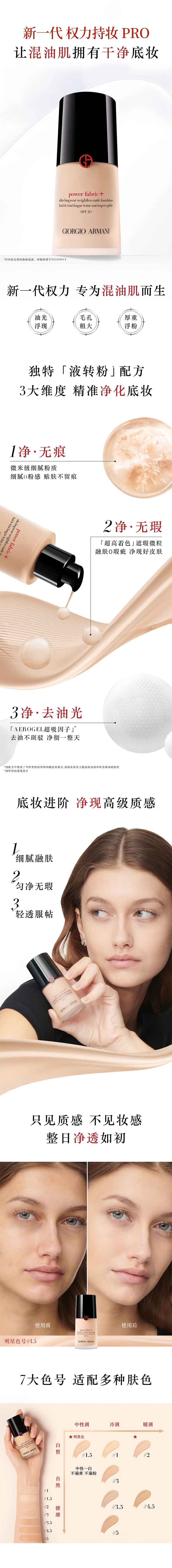阿玛尼(ARMANI)权力持妆PRO粉底液#2 暖调白皙30ml遮瑕控油 生日礼物送女友女