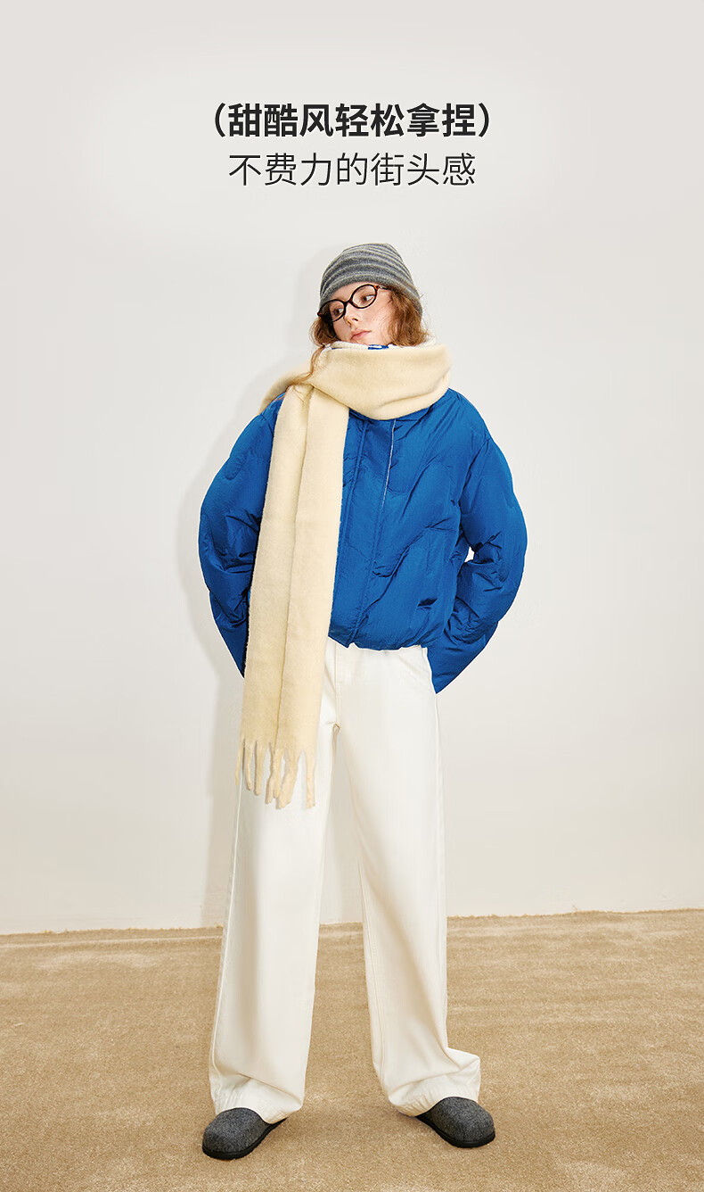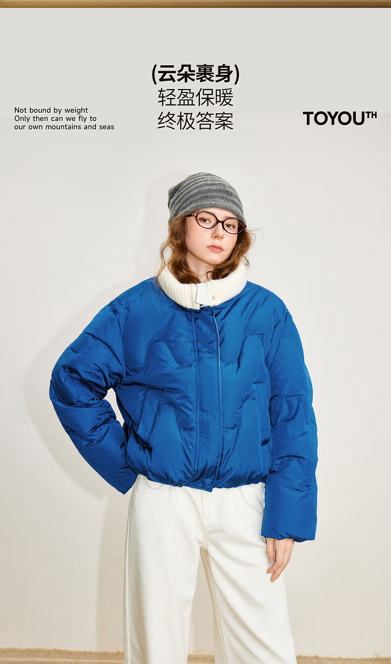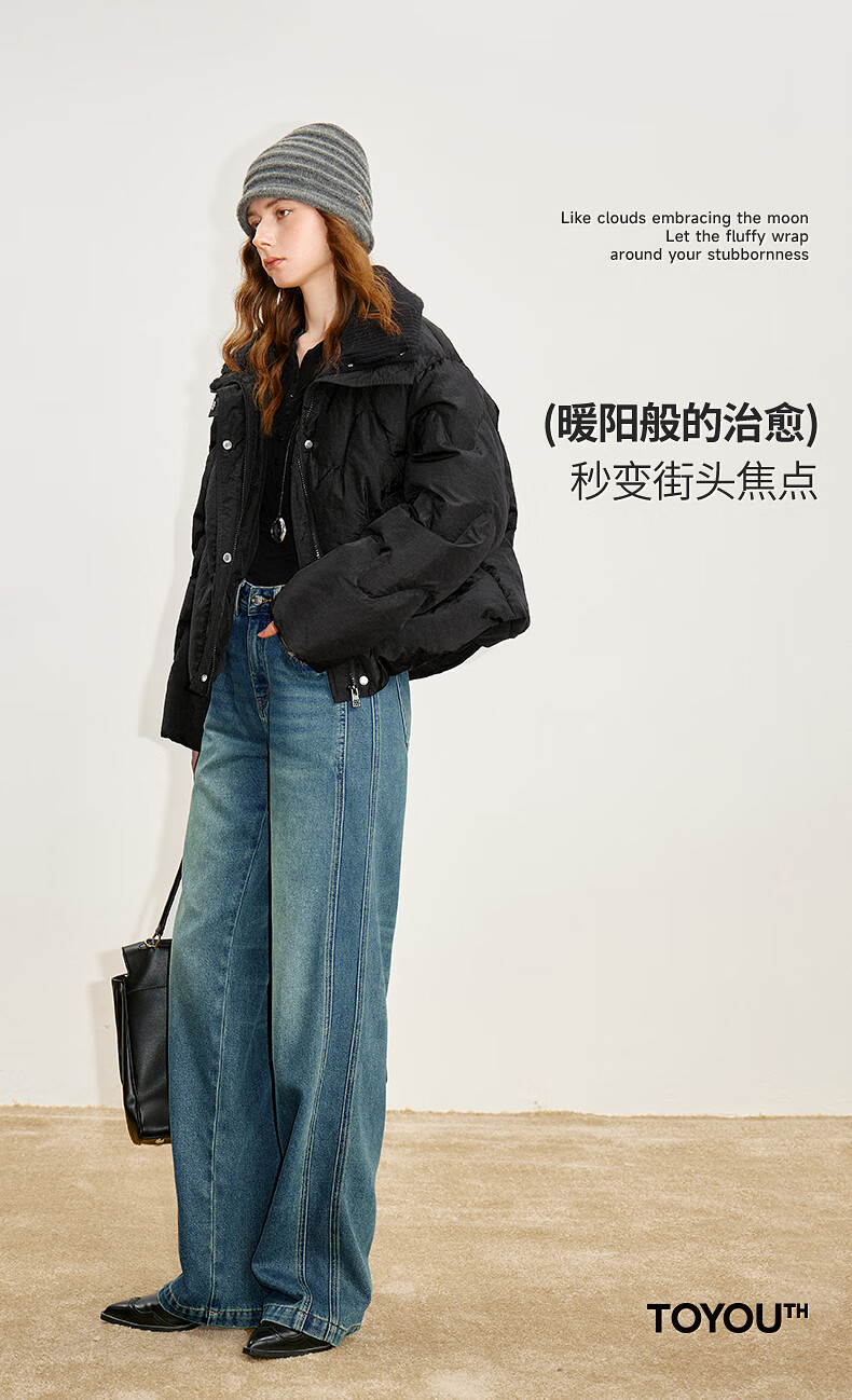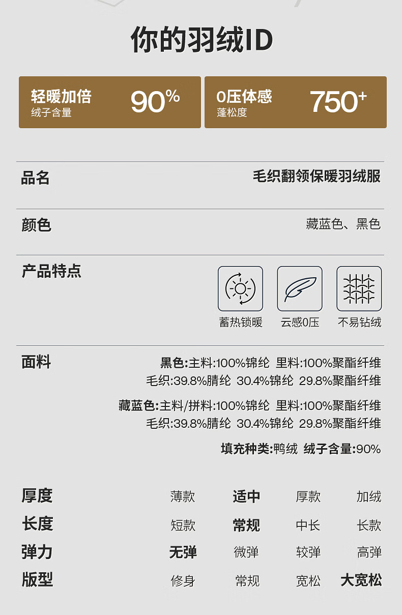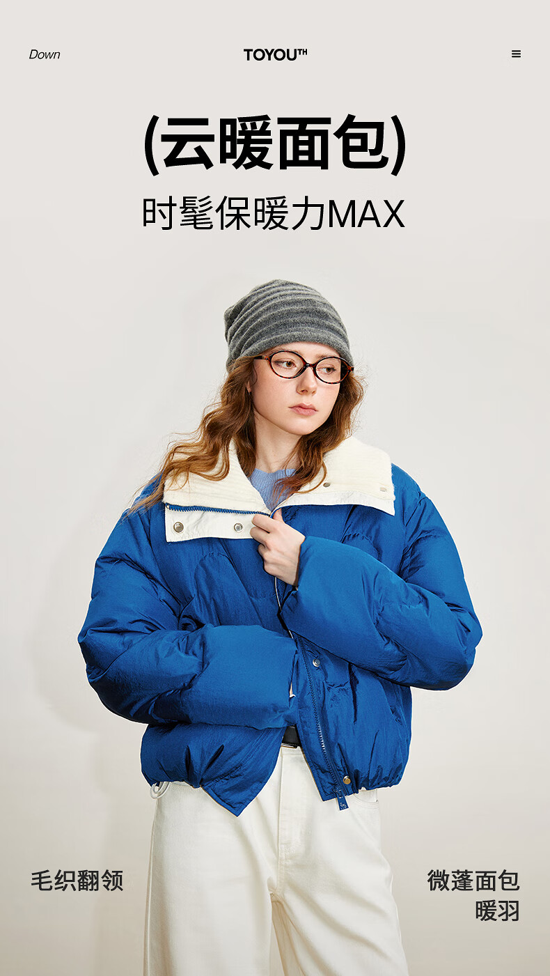 初语羽绒服女2025冬季新款毛织翻领面包服90绒轻盈保暖藏蓝色外套 黑色 M