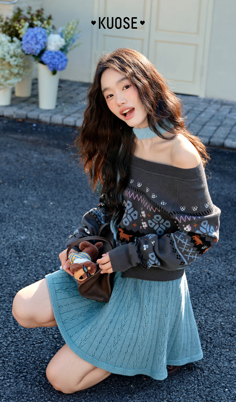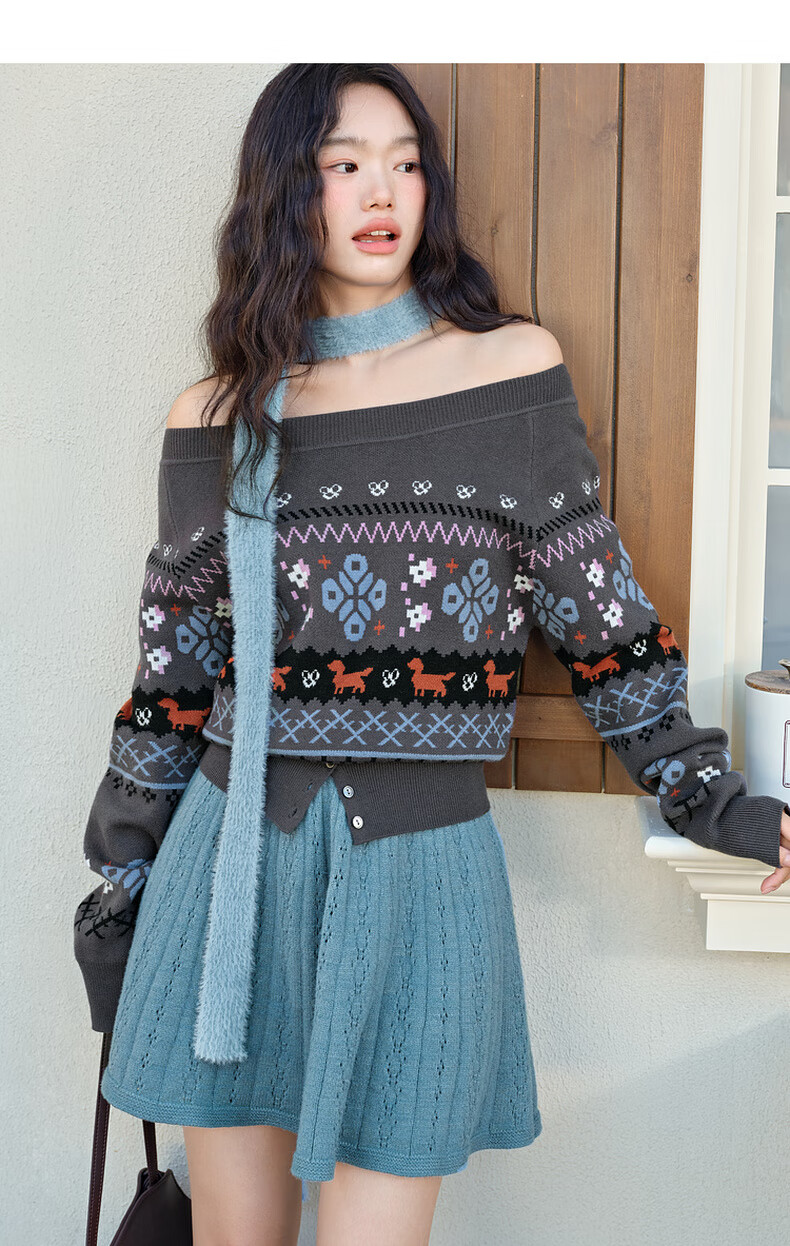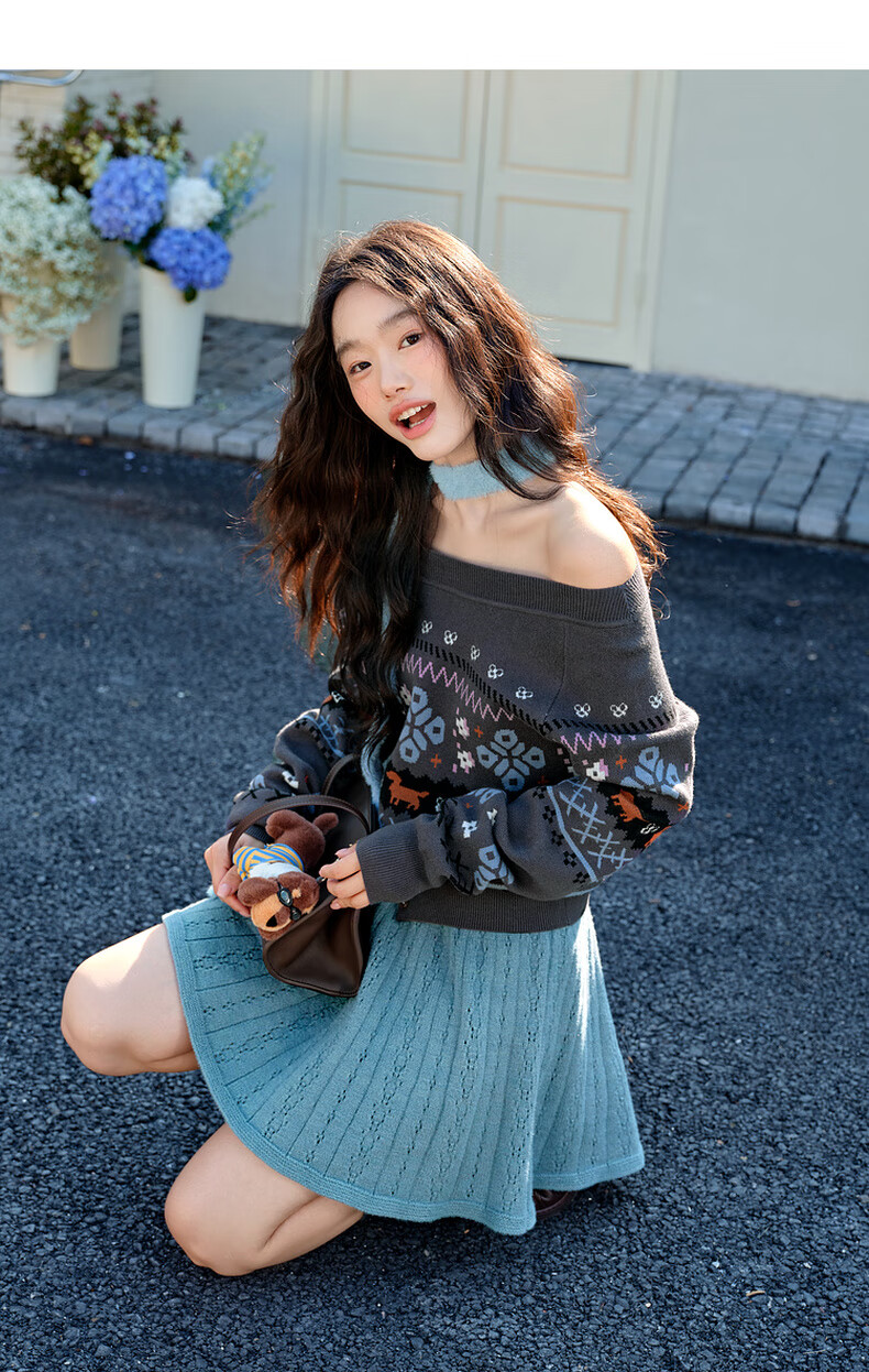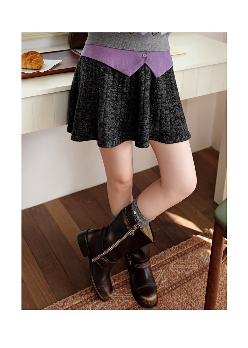 阔色黑灰色a字半身裙伞裙2025秋冬季新款女半裙毛衣裙咖色短裙子 黑灰色 S