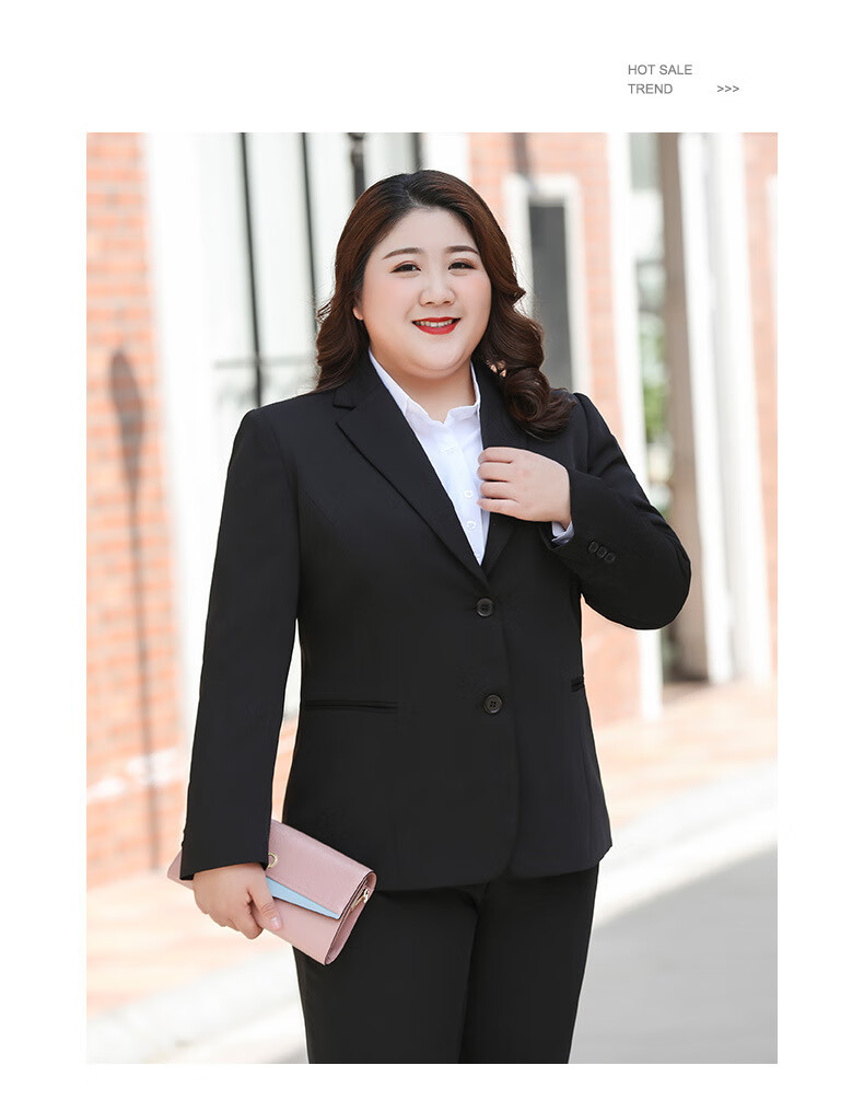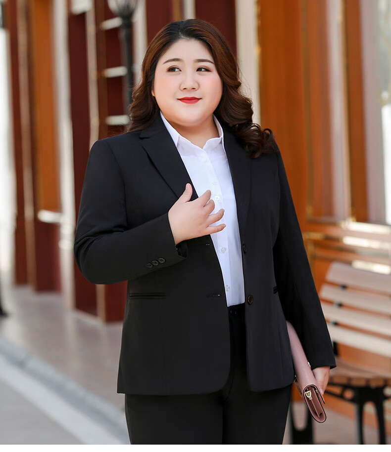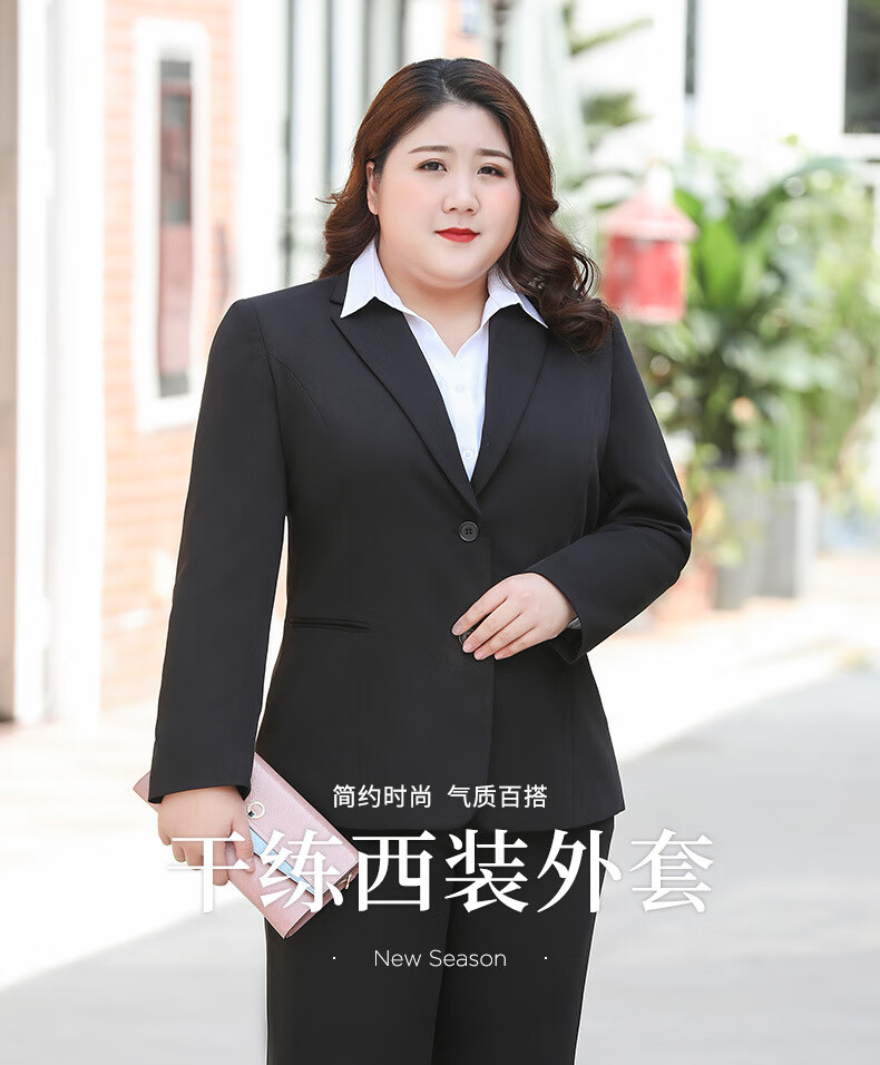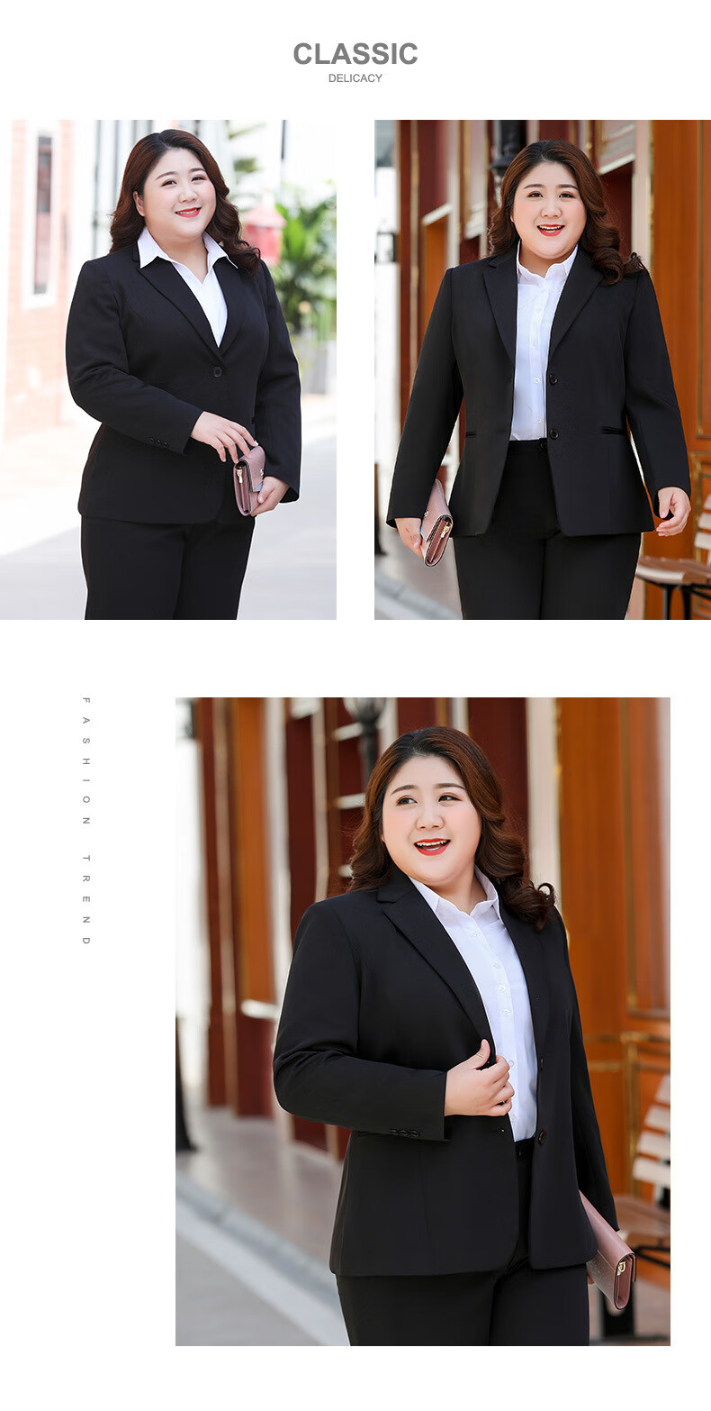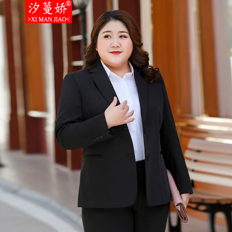 汐蔓娇职业装女套装秋冬款西装外套女加肥加大码胖女人面试正装商务工装 黑色西装+裤子+裙子 2XL 码(重120-130)