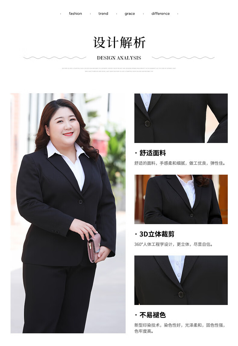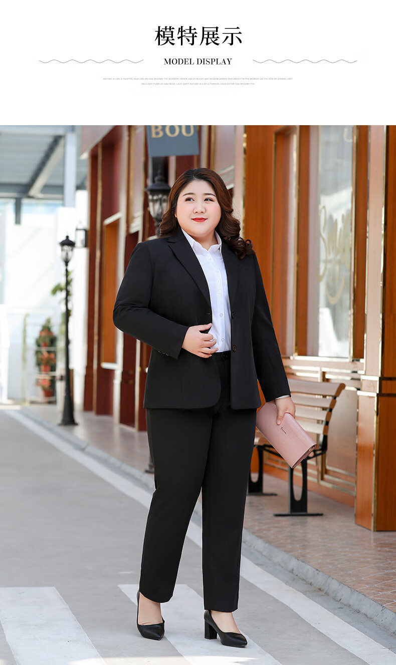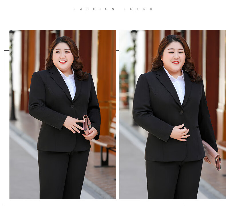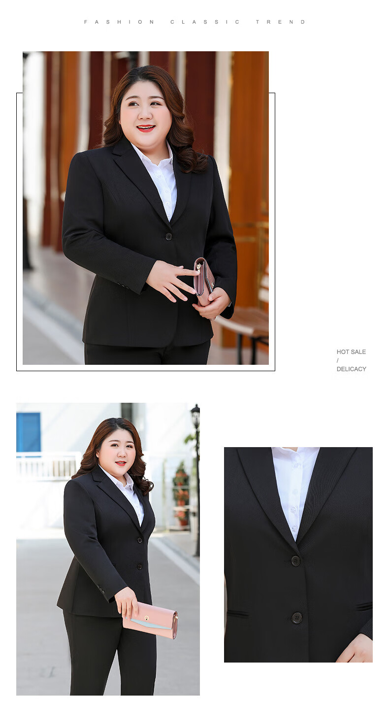 汐蔓娇职业装女套装秋冬款西装外套女加肥加大码胖女人面试正装商务工装 黑色西装+裤子+裙子 2XL 码(重120-130)
