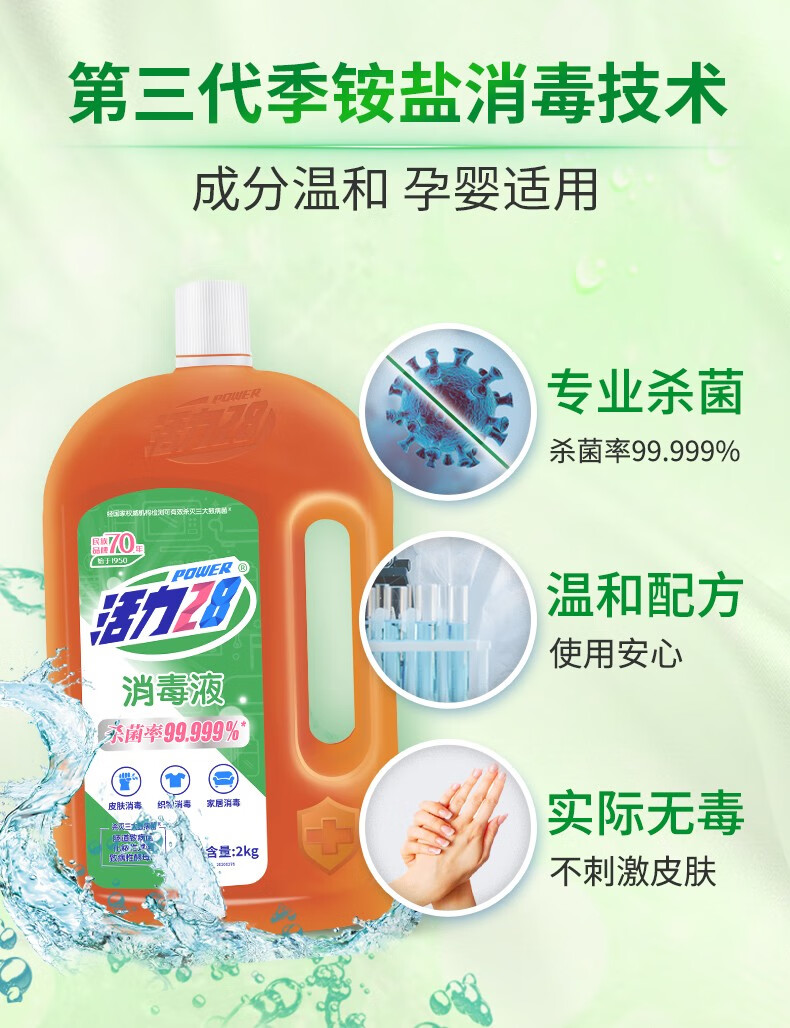 活力28消毒液2kg 衣物除菌液洗衣消毒水杀菌 家庭清洁宠物地板消毒除菌